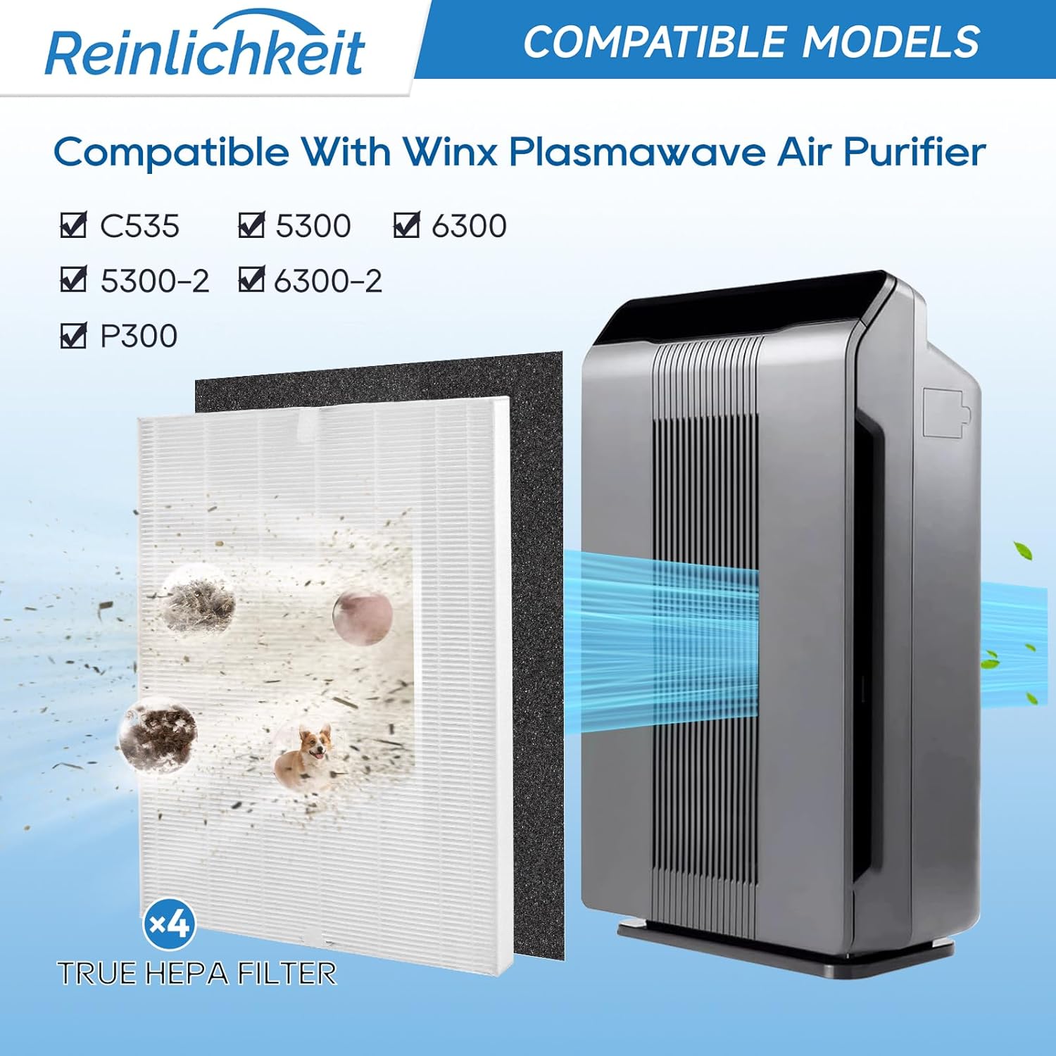Wide Compatibility: The 115115 hepa replacement filter is compatible with Winx Air Purifier C535, 5300, 5300-2, 5500, 5500-2, 6300, 6300-2, AM80, AM90, P300; Compared to Part # 115115 Size 21 filter A; Package includes four 115115 hepa replacement filter plus four carbon pre-filters