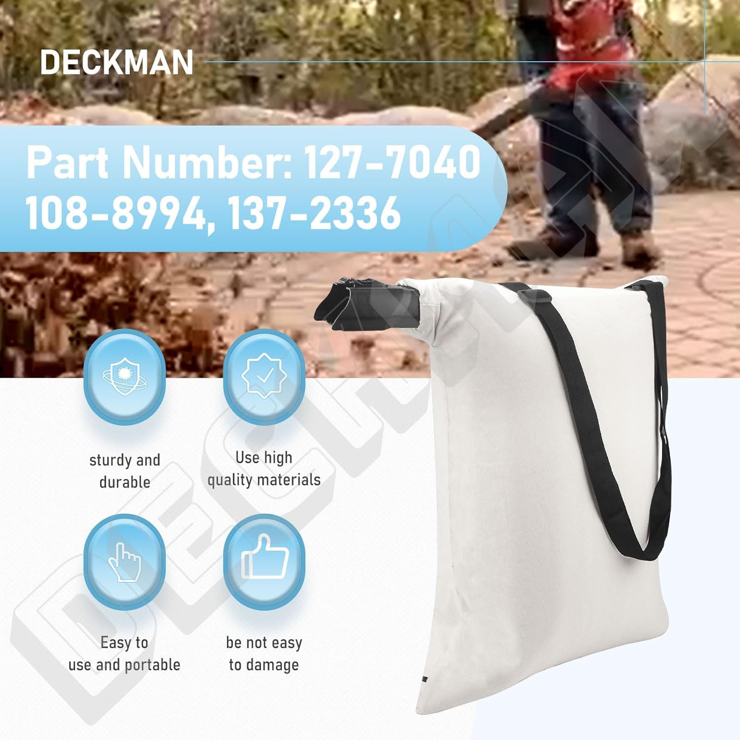 Compatible with Toro: 51436, 51563, 51574, 51581, 51558, 51609, 51619, 51621, 51681,51599, 51602, 51592, 51593, 51594 This bag can hold a large amount of debris, dust and fallen leaves, effectively avoiding breakage. The bags are made of high quality cotton textile with excellent craftsmanship, containing 20% polyester and 80% cotton, providing higher durability and long service life. Our leaf collection bags come with extra sewing threads for fine workmanship, and we have added extra sewing threads at the bottom of the bag to strengthen the zipper area and prevent cracking