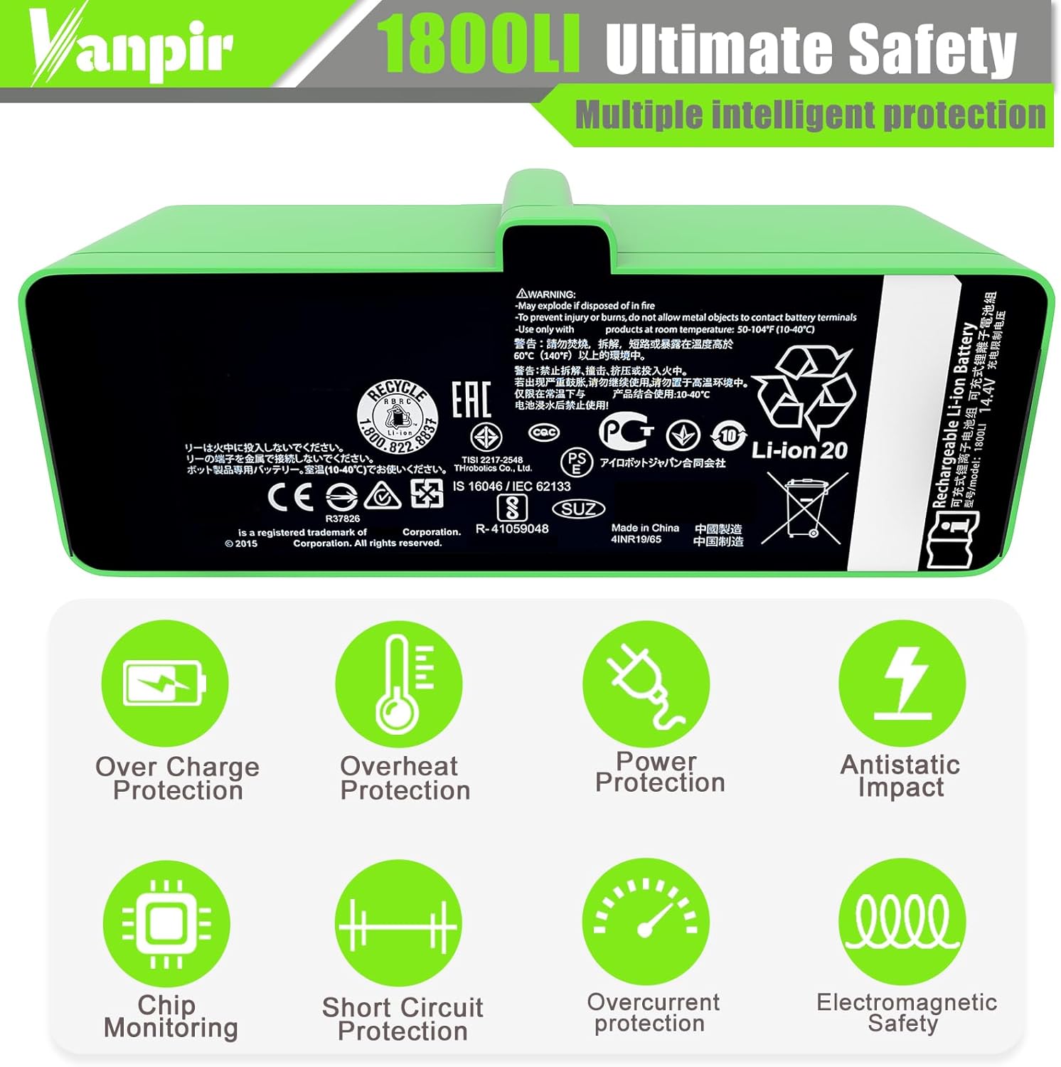 👍【Safe to Use】All Vanpir products are Certified by CE / FCC / RoHS for safety. Strict guidelines for compatibility, strict quality control standards to ensure the true capacity, stable current and low self-discharge and standards compliance for environment safety.We are confident in the performance of the replacement battery.