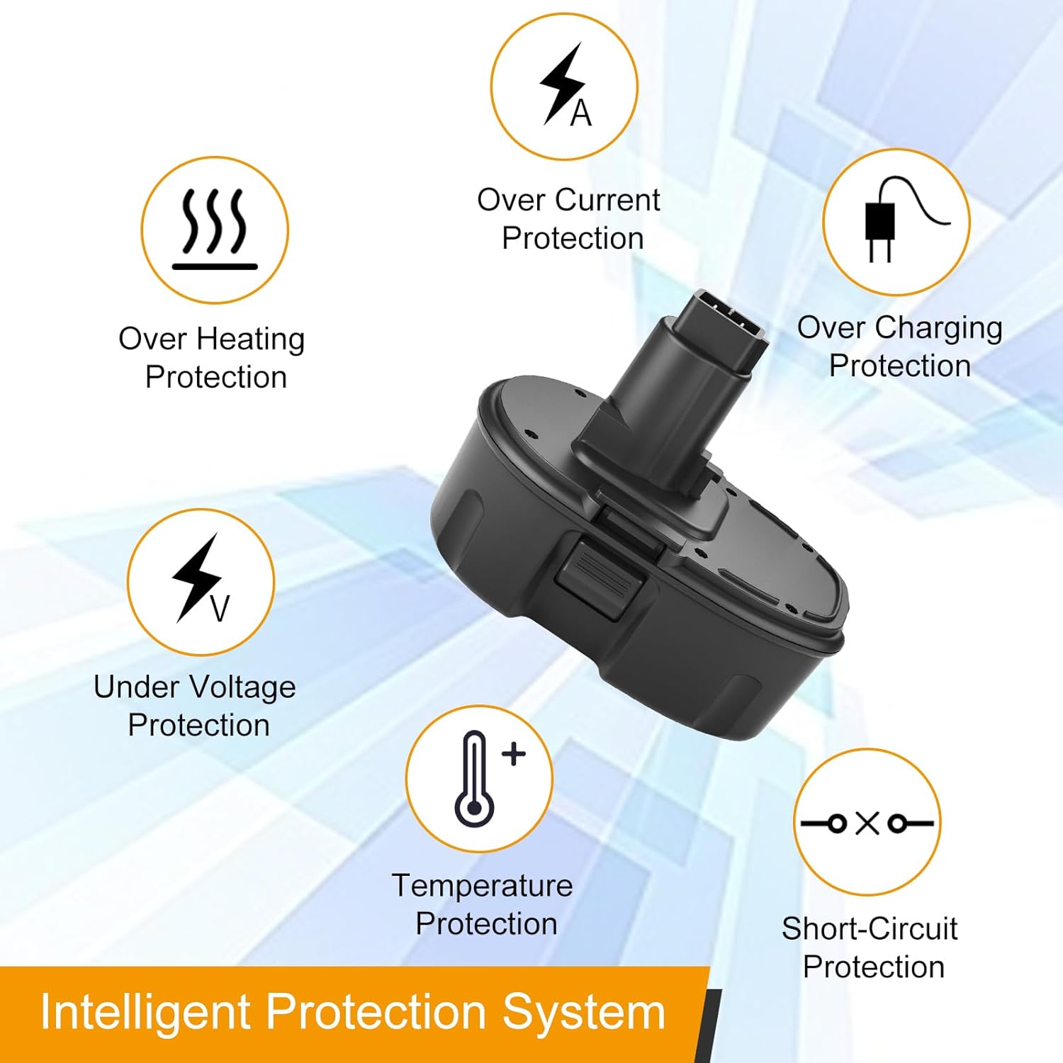 Replacement PN: Replacement Battery Compatible with Dewalt DC9096, DC9098, DC9099, DW9095, DW9096, DW9098, DW9099, DE9039, DE9095, DE9096, DE9098, DE9503. For Dewalt 18V Battery: For Cordless Reciprocating, Jig, Circular, Chain, Band, and Table Saws: DWHT66387, DWHT55524, DWHT20123, DW938K, DW938, DW936K, DW936, DW934K2H, DW934K2, DW932, DW933, DW933K, DW934, DCS385L, DCS372KA, DCS372B, DCS370B, DCS370L, DCS370K, DCS331N, DCS331L2, DCS331L1, DCS331M1, DCS331B, DCS330L, DCK251X, DCD960KL, DC390N For Dewalt 18V Battery: For Cordless Drills and Drivers: DWST08203, DW997K-2, DW959K-2, DW621, DW960, DW987, DW988, DW989, DW995, DW997, DW987KQ, DW988KQ, DW960B, DW960K, DCSM60, DCSD62LPB, DCF826KL, DCD985L2, DCD985B, DCD980L2, DCD970KL, DCD959VX, DCD959KX, DCD950VX, DCD950KX For Dewalt 18V Battery: For Cordless Impact Wrench: DW059KH-2, DW059K-2, DW059HB, DW059B, DW059, DW057N, DW057K-2, DW057K, DW056N, DW056KS, DW056K-2, DW056K, DW056, DCF059KL, DC841KA, DC830KA, DC823KA, DC823B, DC822KL, DC821KA, DC820KB, DC820B, DC820KA, DC820 For Dewalt 18V Battery: For Rotary Hammers: DW999KQ, DW999K2H, DW999K-2, DW999K2, DW999K, DW999, DC213KB, DC212N, DC212KZ, DC212KL, DC212KB, DC212KA, DC212B, DC212 For Cut-Out/ Cut-Off Tools: DCG411KL, DC550KA, DC550B, DC550, DC411KL, DC411KA, DC411B, DC410N, DC410KB, DC410KA, DC410 For Dewalt 18V Battery: For Rotary Hammers: DW999KQ, DW999K2H, DW999K-2, DW999K2, DW999K, DW999, DC213KB, DC212N, DC212KZ, DC212KL, DC212KB, DC212KA, DC212B, DC212 For Dewalt 18V Battery: For Cut-Out/ Cut-Off Tools: DCG411KL, DC550KA, DC550B, DC550, DC411KL, DC411KA, DC411B, DC410N, DC410KB, DC410KA, DC410 For Dewalt 18V Battery: For Cordless Nailers and Staplers:DC608K, DC616K, DC618, DC618K, DC618KA, DC628K, DC608B, D28493N For Dewalt 18V Battery: For Shears: DC495KA, DC495B, DC490KA, DC490B;For Cordless Screwdrivers: DC668KA, DC520KA For Dewalt 18V Battery: For Grease Guns: DCGG570K, DCGG570B;For Cordless Vacuums: DCB090, DC515N