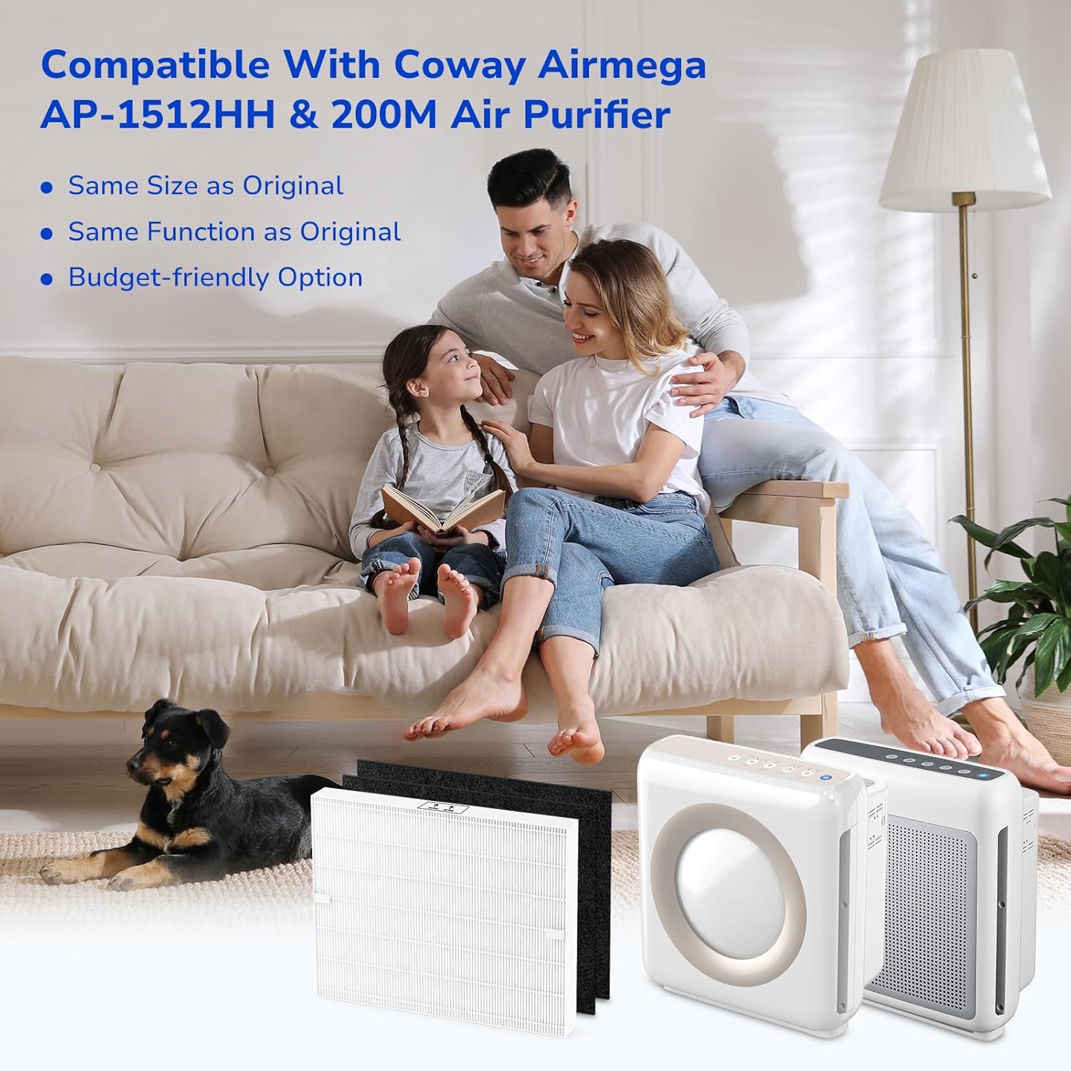 Model Compatibility: Compatible with Coway AP-1512HH, AP-1512HH-FP, AP-1518R, AP-1519P and Airmega 200M mighty air purifier, replacing filter model 3304899. All manufacturers’ names and part numbers are used for compatibility information only.