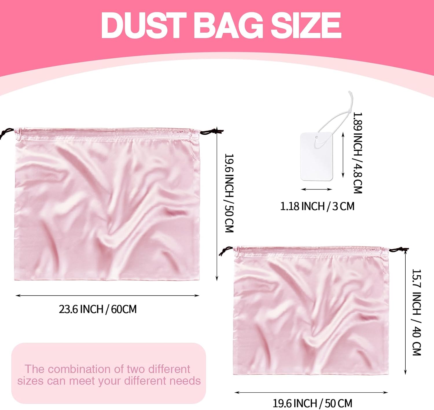 2 Pack Silky Dust Bags for Handbags, Pink Satin Dust Cover Bag Silk Drawstring Bag Handbag Protector Travel Storage Pouch for Purse Shoes Boots(19.6 x 15.7 In + 23.6 x 19.6 In)