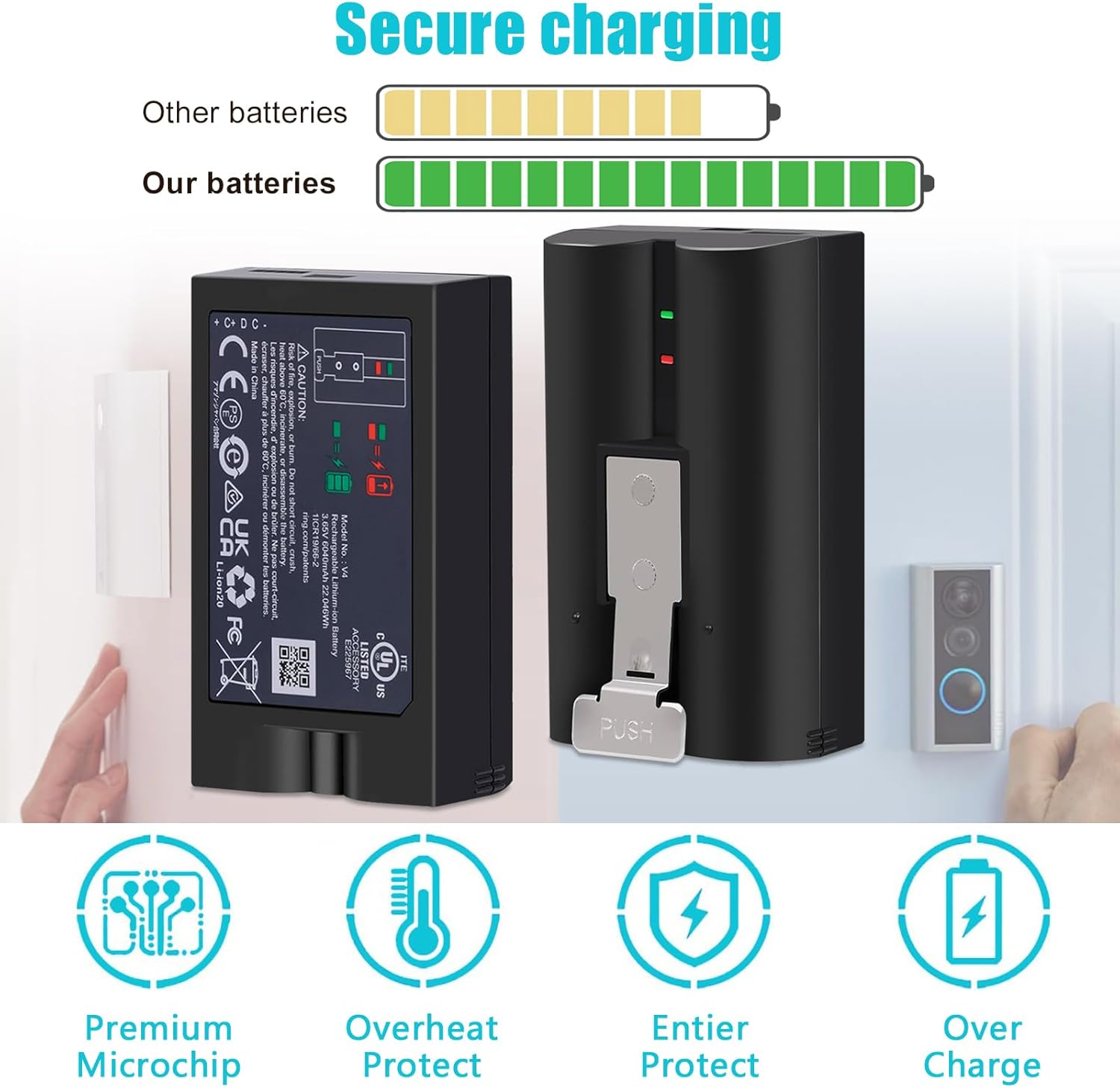 ✅【Compatible Models】Works with Ring-Video Doorbell 2/3/3 Plus,/4, Battery Doorbell Plus, Stick Up Cam Battery/Solar (all gens), Stick Up Cam Pro Battery/Solar, Spotlight Cam Battery/Solar, Spotlight Cam Plus Battery/Solar/Wired, Spotlight Cam Pro Battery/Solar/Wired, Peephole Cam, Solar Floodlight.