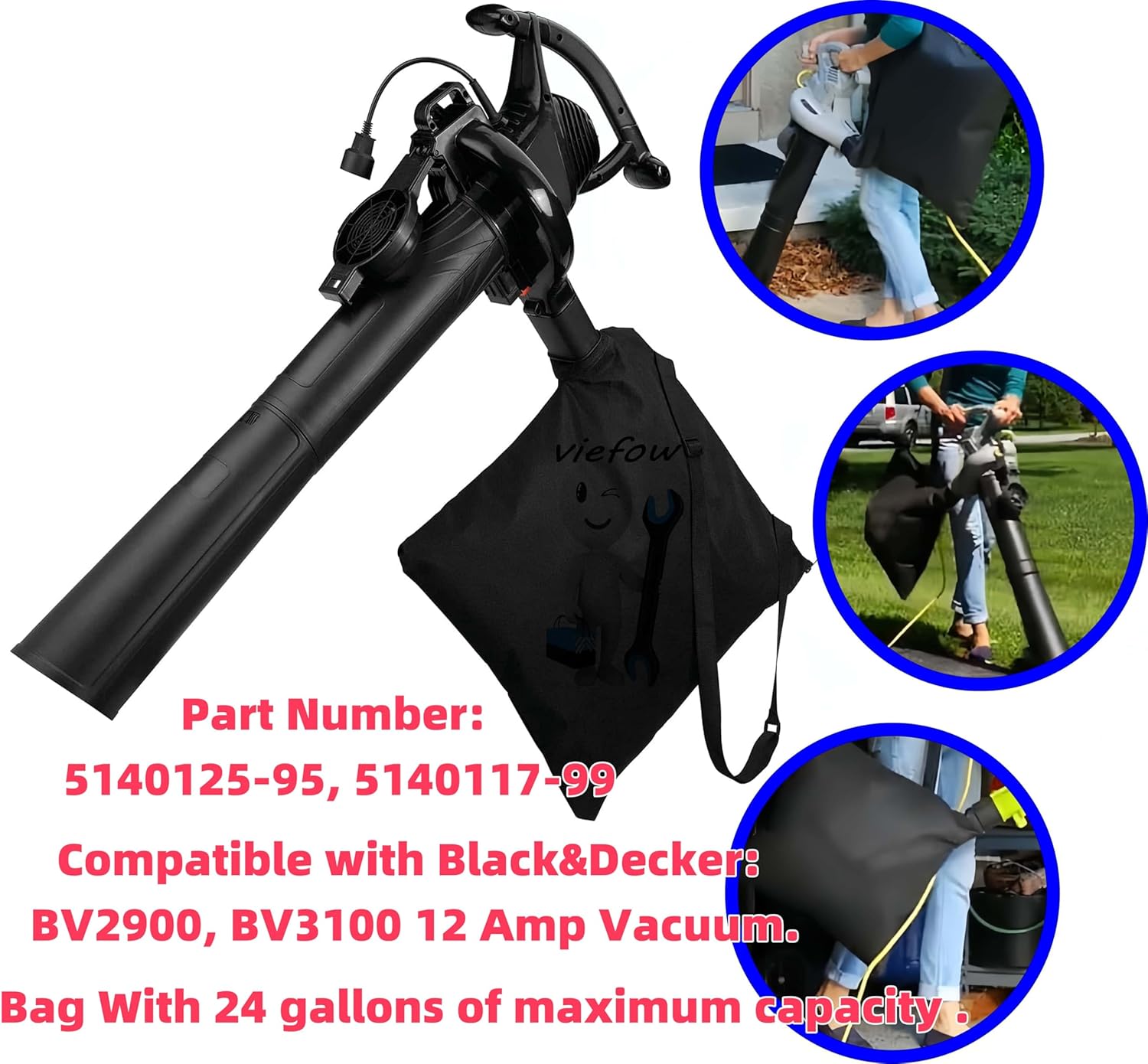 24 Gallons 5140125-95 Leaf Blower Vacuum Vac Shoulder Bag/Leaf Bag Replacement 5140117-99, Compatible with Black & Decker BV3100/BV2900 Blower