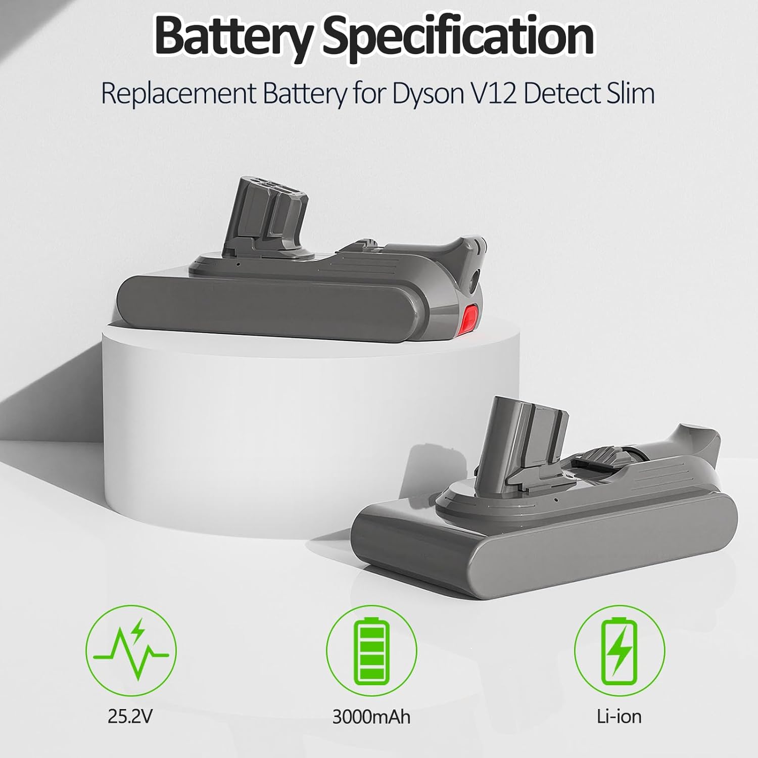 25.2V 3000mAh Replacement Battery for Dyson V12 Detect Slim, 965470-01, SV20, SV26, SV30, SV34, SV35, SV46 Cordless Vacuum Cleaner