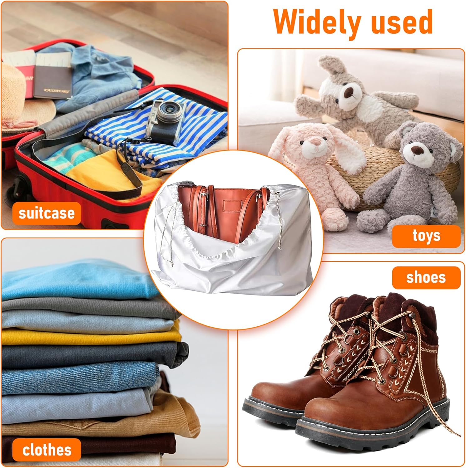 We all know that just can ruin our most valuable items. This is a great way to protect them. You donât have to use it just for a bag you could use a dust bag for jewelry. If youâre on the go, toss your medicine, your cosmetics and what have you in there These are high-quality superbly made dust bags. I immediately put one on my Gucci. Love the feel nice and soft will definitely be buying more.