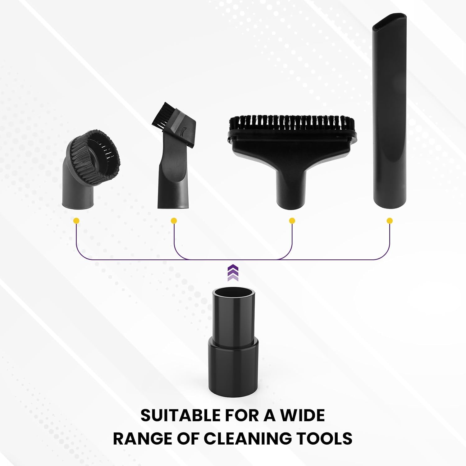 : The universal vacuum hose adapter connects a 32mm (1-1/4-inch) vacuum cleaner adapter accessory to a 35mm (1-3/8-inch) vacuum cleaner hose