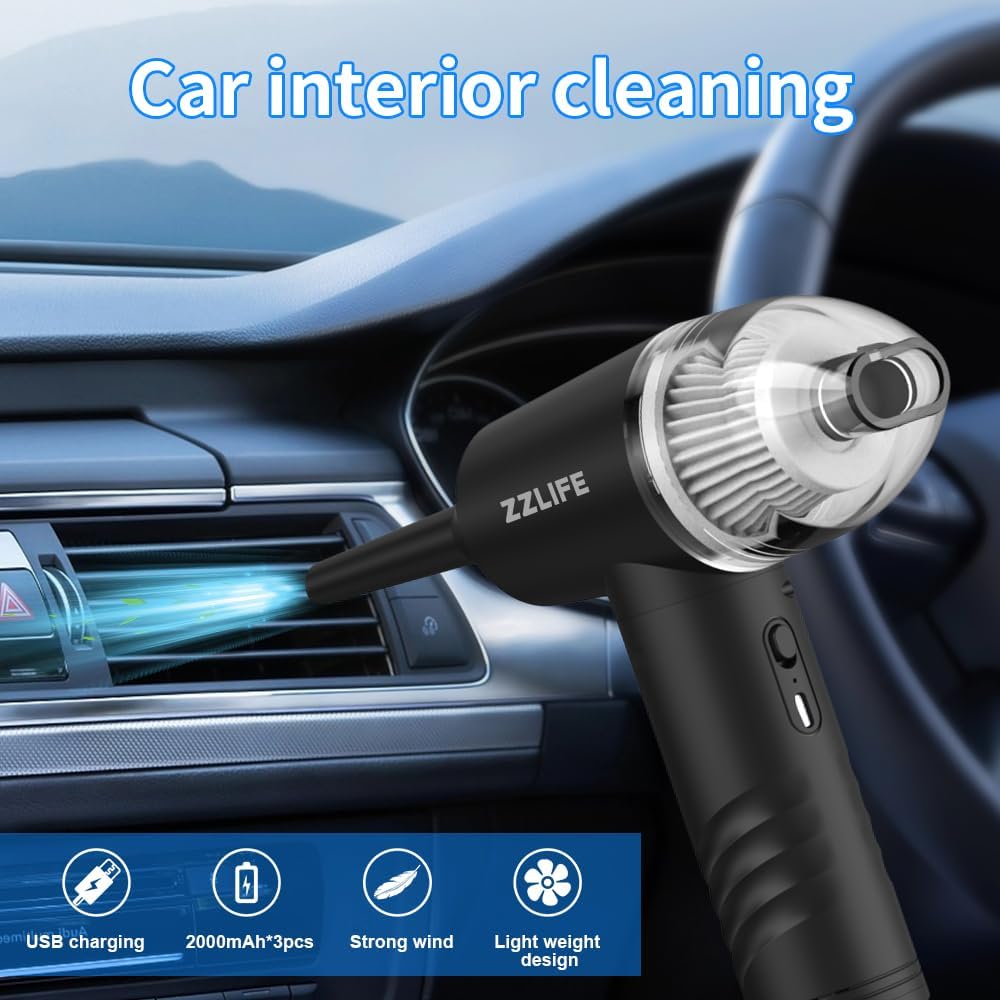First Impressions of ZZLIFE 3 Gear Compressed Air Duster and Vacuum Cleaner, 7000Pa/55000RPM Handheld Car Vacuum/Air Blower& Pump, Keyboard Duster with LED Light-10 Kits Air Blower for Computer(Black)âââââ 5-starsâ Very powerful airflowâ 3-speedsâ Dual purpose design (blower, vacuum)â Multiple use accessoriesâ Drawstring bag, charging cord includedâ Comfortable ergonomicsâ Sturdy buildâ Great gift for tech nerdsâ Can get a bit whiny and loudâ Slightly bulkier than many competitor productsâ Vacuum function limitedThis is a well-priced, very capable canned air substitute. Itâs not the strongest duster that Iâve tested but itâs very close. It comes with several effective reduction cones that increase the velocity and force of the air blown from the duster. I really like the brush tipped cone attachment. I found that the vacuum end wasnât as strong as I hoped â therefore it has limited use scenarios. Price-to-performance ratio or bang for the buck, out of the seven dusters Iâve evaluated to date, this unit is neck and neck for best.If over long term use, my feelings change about this product, I will update this review. Thanks for reading and hope this helps.