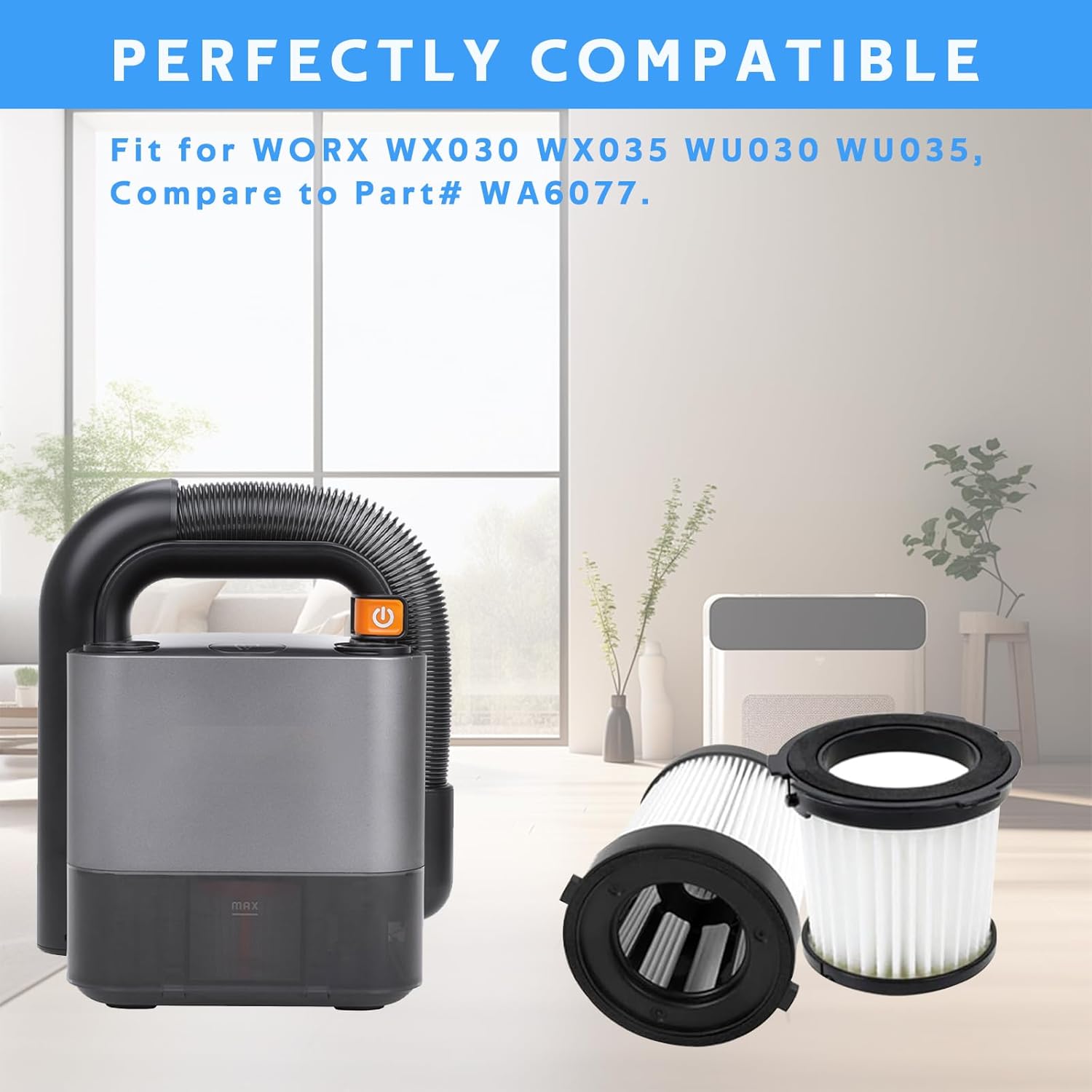 【Compatible Models】This filter is compatible with WORX WX030 WX035 WU030 WU035 Vacuum Cleaner, Compare to Part# WA6077. For your purchasing experience, please make sure your machine model matches before you purchase.