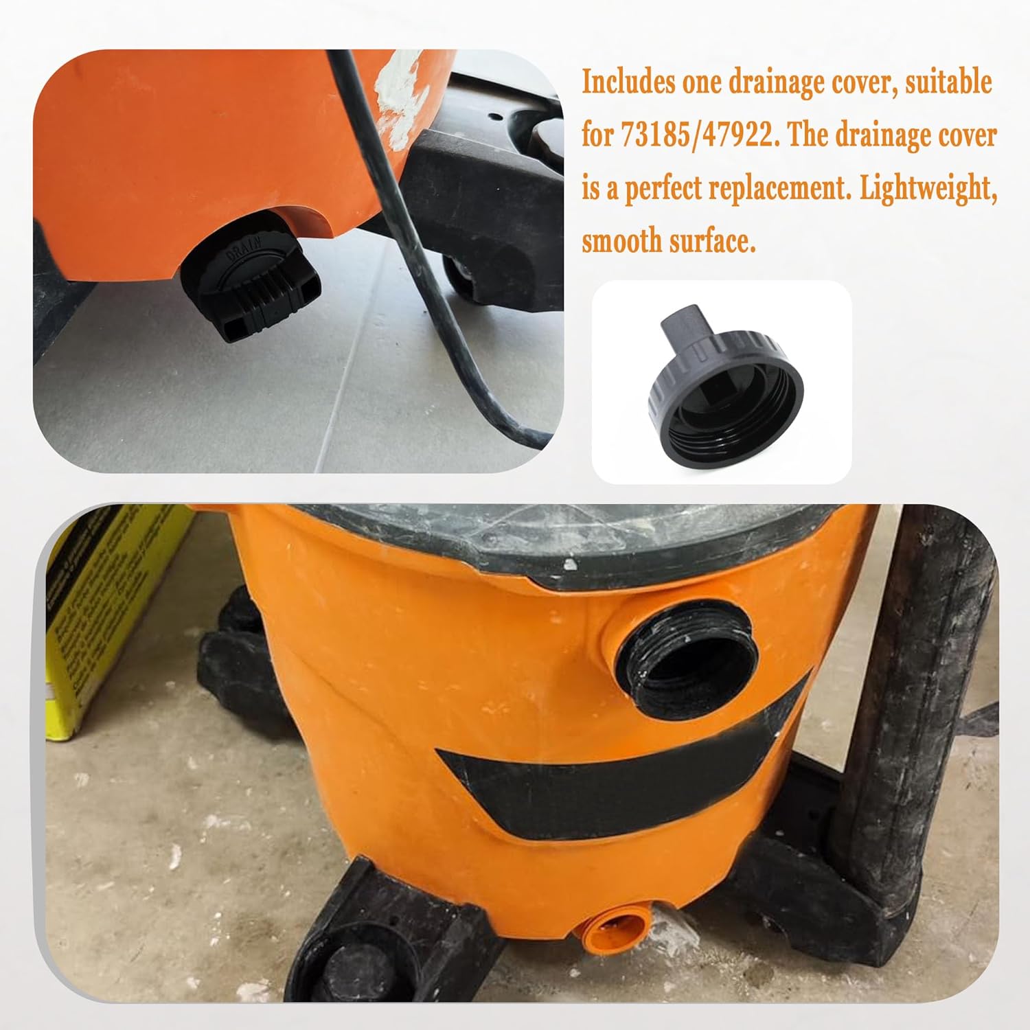 I lost the drain cap for my shop vac awhile back. I can tell you that duct tape is pretty marginal as a substitute drain cover when you have to clean up water!ð¤. Then I found this was available on Amazon and I didnât have to run around looking for one. Nice! It fits. The end.