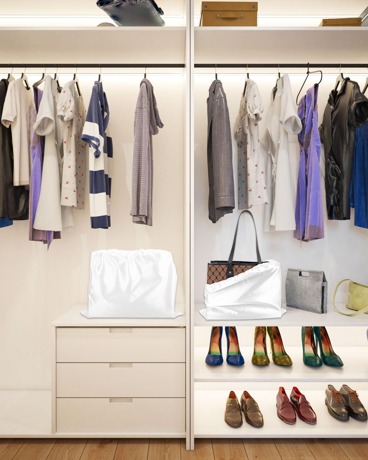 【Versatile Dust Bags】: Dust covers are very convenient. They are not only perfect dust covers for luxury purses, handbags or jewelry keepsakes. They are also ideal travel organizers, you can use them to store and organize shoes, boots, electronics, backpacks, toiletries, cosmetics, wigs, etc. to keep your belongings in order