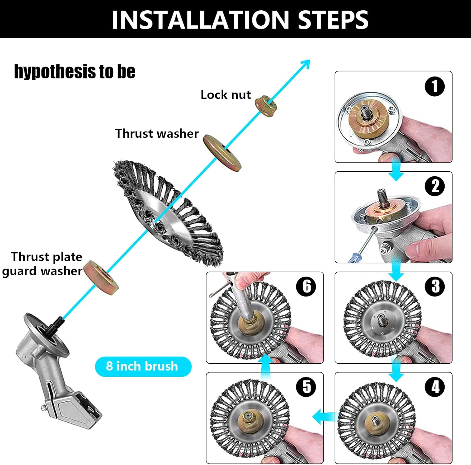 I was excited to try this attachment on my trimmer, but after hours of trying, it just wonât work on my trimmer. The little piece of paper in the box had the smallest font possible, making it very hard to read the words. There were two different nuts, yet neither fit on the bolt. When I tried a different one from my supply, the weed wacker ratcheted it tighter and tighter until it was locked down when I turned it on. I feel like there were parts missing to make this spin.The concept seemed so simple and easy and the wire brush-like âspokesâ felt very sturdy and capable but Iâm unable to use it, so I wasted money.