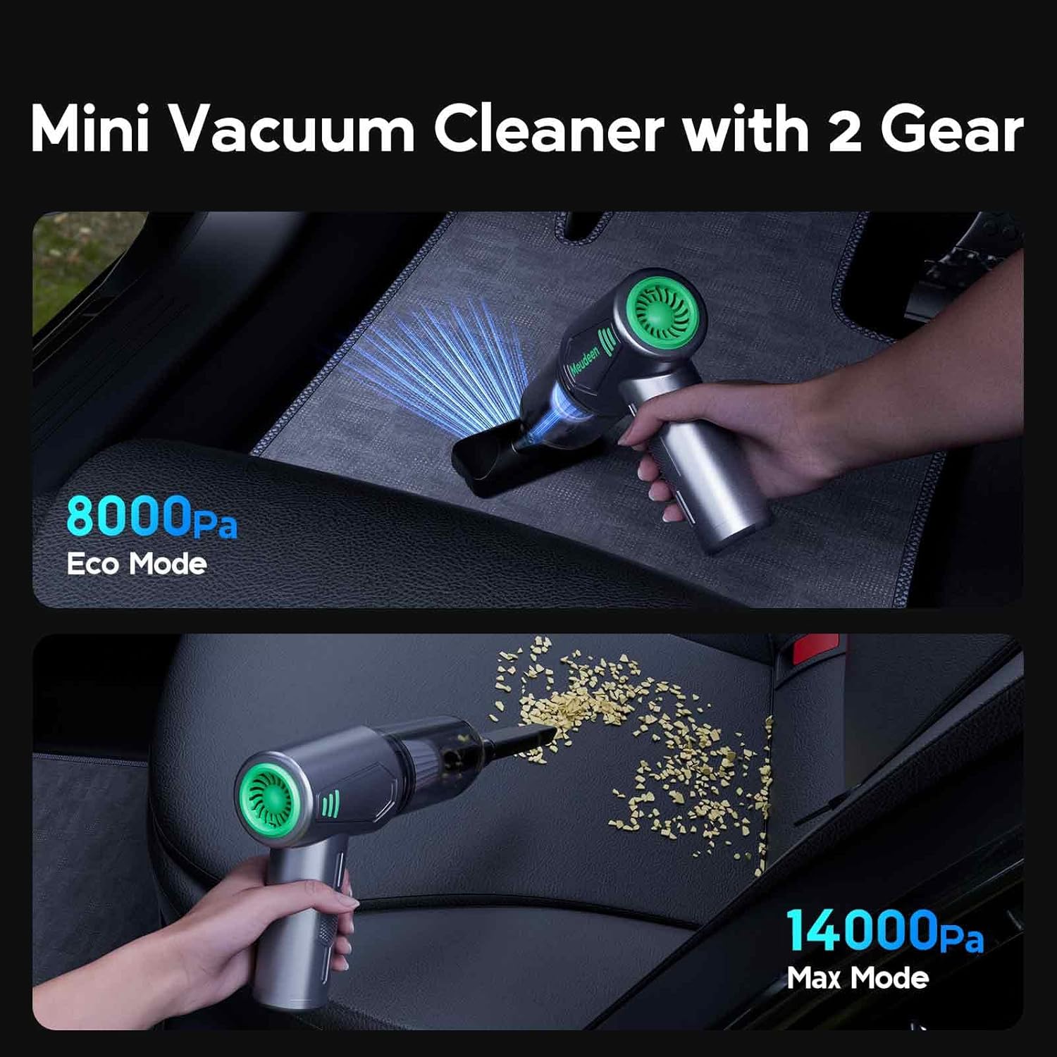 【Innovative 3 in 1 Multifunction】It is not only a mini vacuum cleaner, but also an air duster and air blower.One end of the machine is connected to the nozzle for vacuuming, and connected to the vacuum slot, which turns into an air pump for travelling, and your vacuum storage bags are airtightly vacuum-packed. while the other end is connected to the nozzle for blowing dust. Nice price and multiple combinations make this computer vacuum cleaner a perfect gift for your family members or friends.
