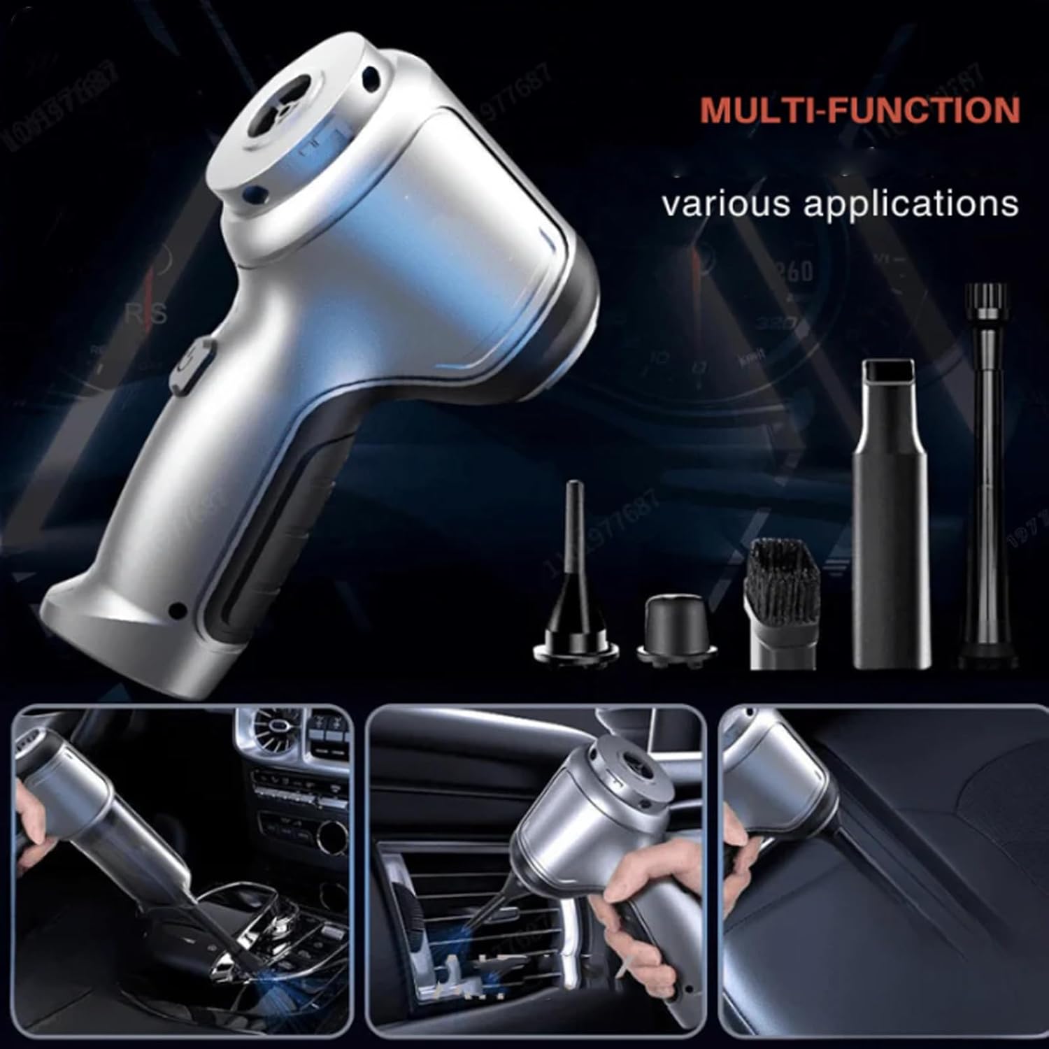 Portable Mini Car Vacuum Cleaner: Cordless and compact, it comes with various brushes and nozzles to effectively clean every corner of your car