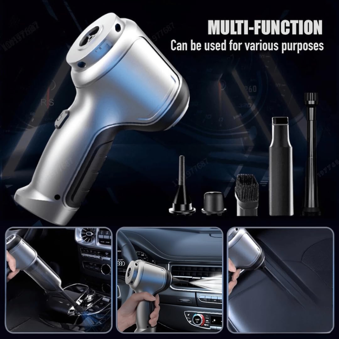 Airified Pro Car Vacuum, Airified Pro V2 – Portable Air Blower/Car Vacuum, 7 in 1 High Power Handheld Vacuum Cordless, Rechargeable Brushless Motor Cordless Vacuum 95000PA for Car (Silver, 1 Set)