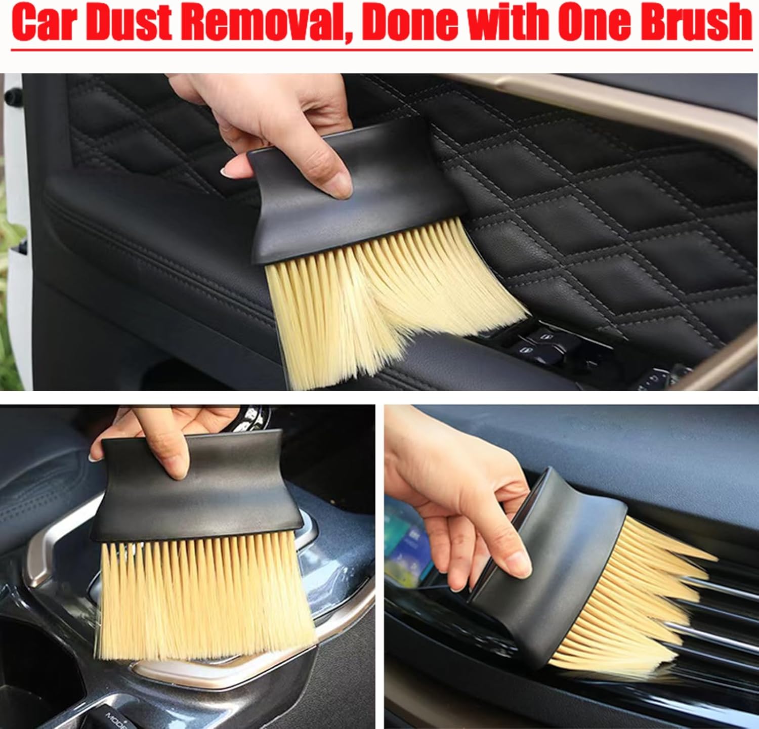 【High quality material】This car brush is made of high quality synthetic fiber material. Its bristles are tight and not easy to fall off, soft and fluffy, can be gently cleaned, quickly air-dried, and can be used repeatedly.