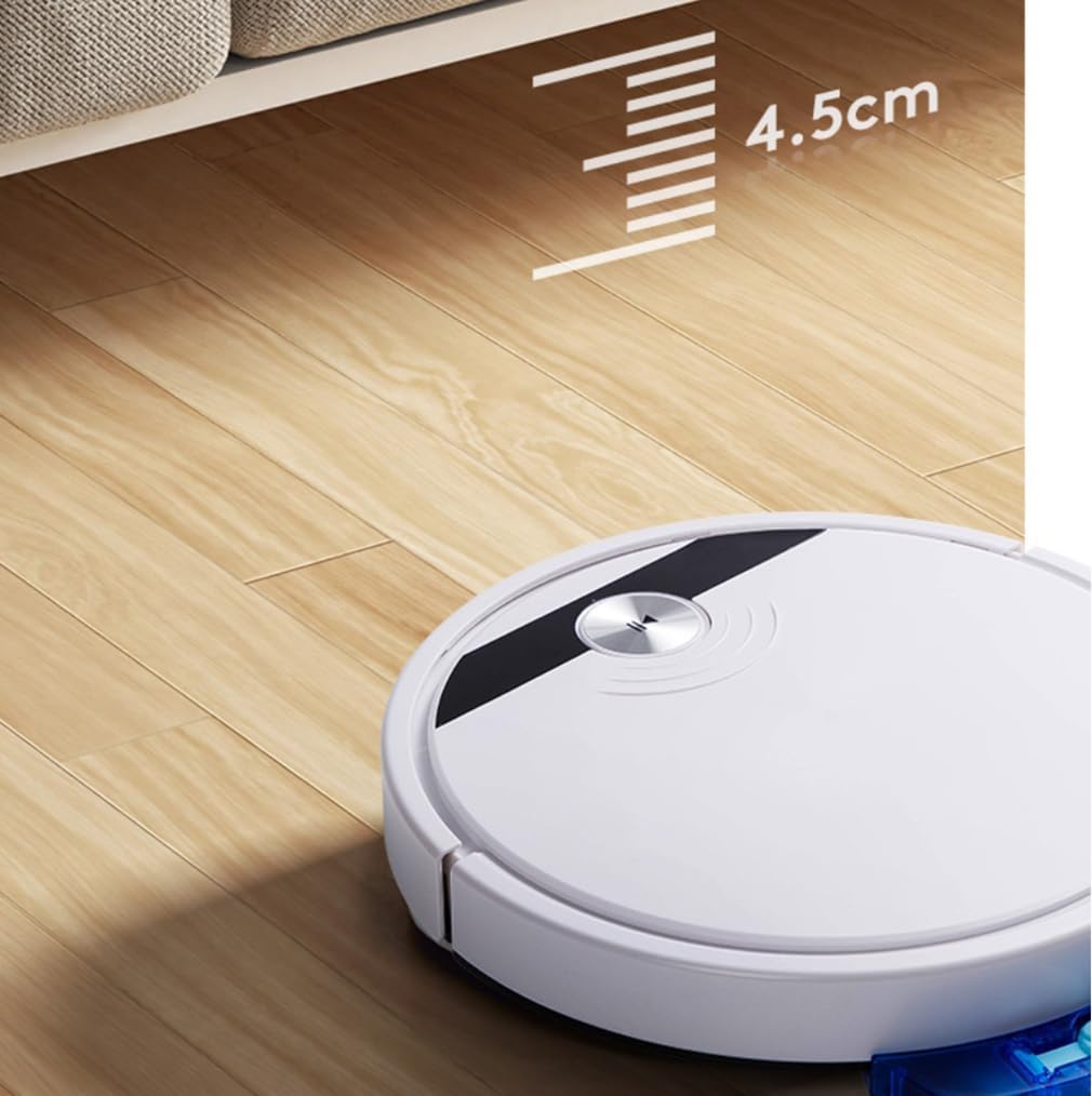 Ultra-thin body. At just 6.5 cm/2.56 inches thick, the thinner body and low profile allow the robot vacuum to reach every corner and tight spaces with ease. Easily clean a room of about 120-150㎡.