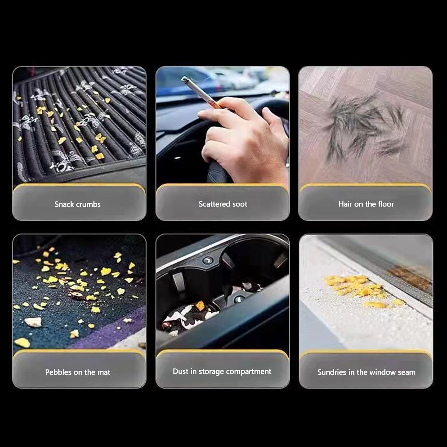 【Wet and Dry Handheld Vacuum Cleaner 】 Extended flat suction nozzle, clean without dead ends, deep dead ends, effectively remov-e water stains and snacks scattered on the mat pet stray hairs. Multi-functional brush for cleaning mats, sockets, keyboards and other scenes, and extended hose for cleaning trunks, lower seats, car interiors, pedals and other scenes.