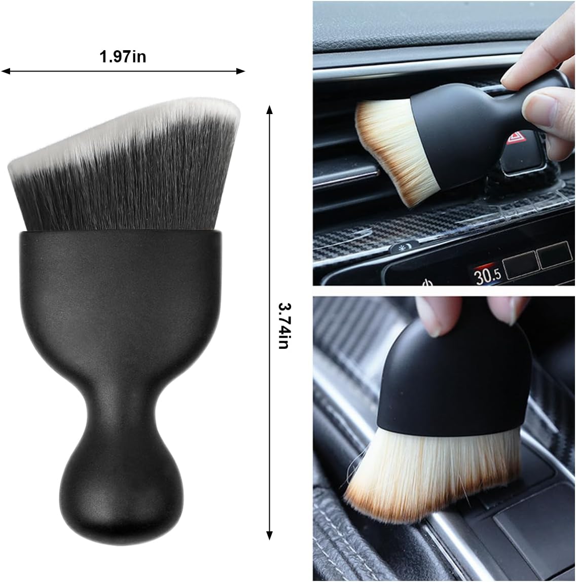 Soft bristles, embedded firmly, do not hurt the car interior when using, not easy to lose hair, durable.