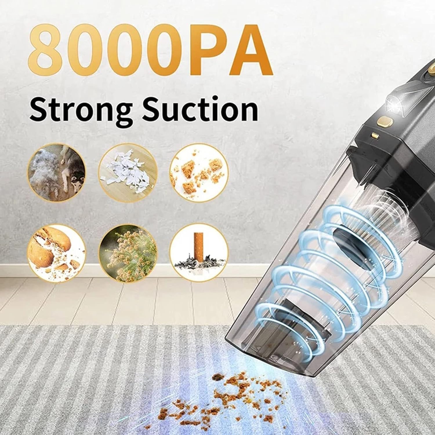 Car Vacuum Cleaner, Handheld Vacuum Cordless Rechargeable, Wet-Dry Use Portable Home & Car Mini Vacuum, 8000PA High Power with LED Light, for Car Vehicle, Home, Office Desk