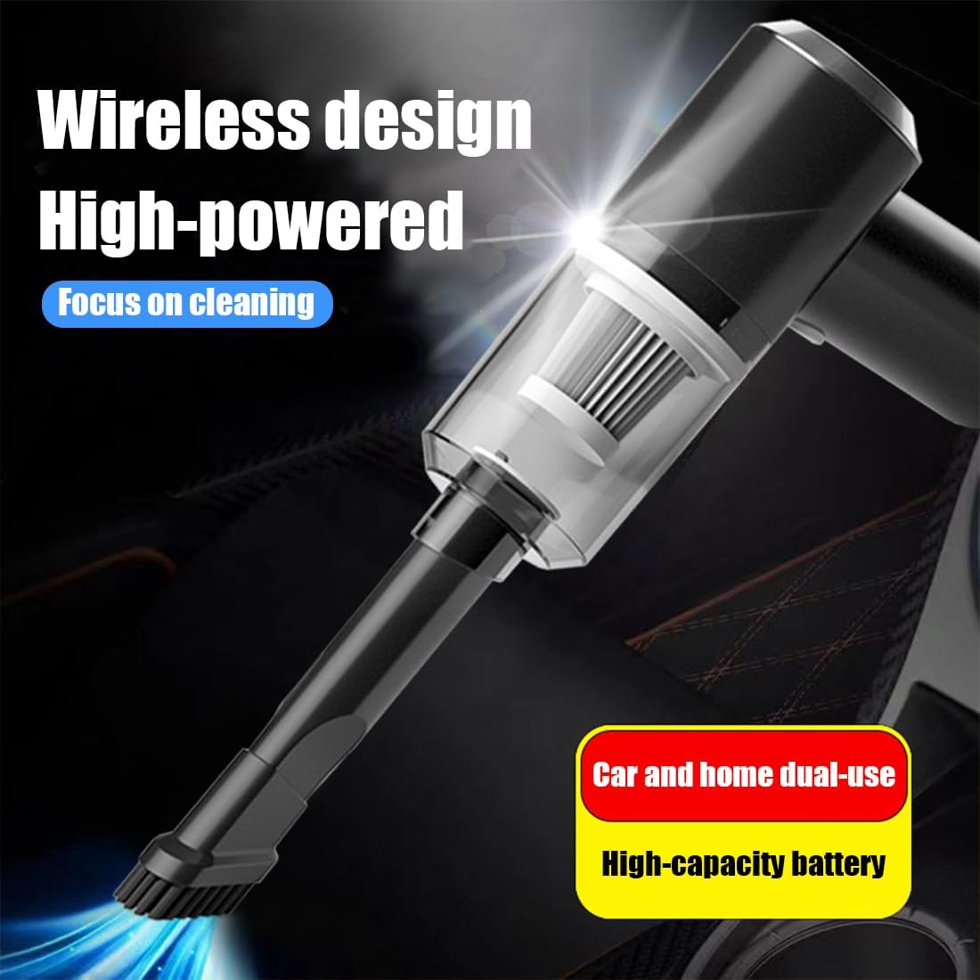 Multiple Accessories Wide Application-This cordless vacuum cleaner comes with 6 types of attachments for detachable brush head nozzles. The blowing nozzle, suction nozzle and brush nozzle for daily blowing & vacuuming cleaning. The inflator nozzle works for inflating swimming ring and more. Hair dryer nozzle for using as a hair dryer to dry clothes etc. Vacuum can be used as a vacuum pump to pump and deflate the storage bag at home. mini vacuum can thoroughly clean computer keyboards, cameras, air conditioners, sofas, windows, pets, plants, and more With 6 accessories to choose from, you can use the vacuum cleaner in any combination you need to make cleaning easier.