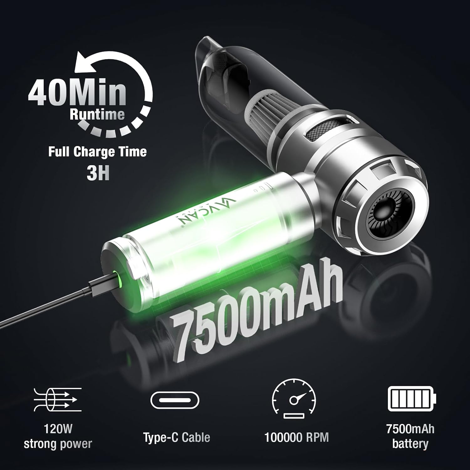 Easy to Use: This wireless handheld car vacuum cordless can be quickly fully charge in 3 h, offering 40 min runtime. Charge in your car or anywhere with a Type-C port. The ergonomic handle provides comfort during use, making car cleaning a breeze