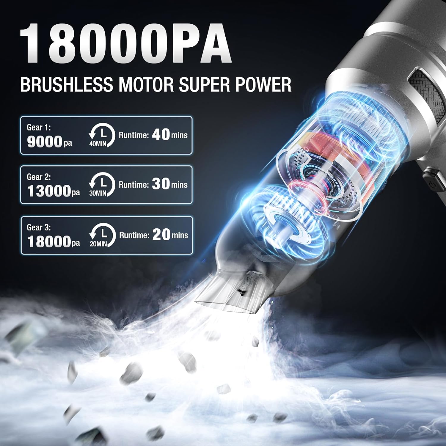6 reviews for Car Vacuum Cleaner High Power,18000PA,40 Mins Runtime, Portable Car Vacuum 4 In 1 Compressed Air Duster & Air Blower & Pump Hand Held Vacuum Cordless With Brushless Motor For Car, Home, Office