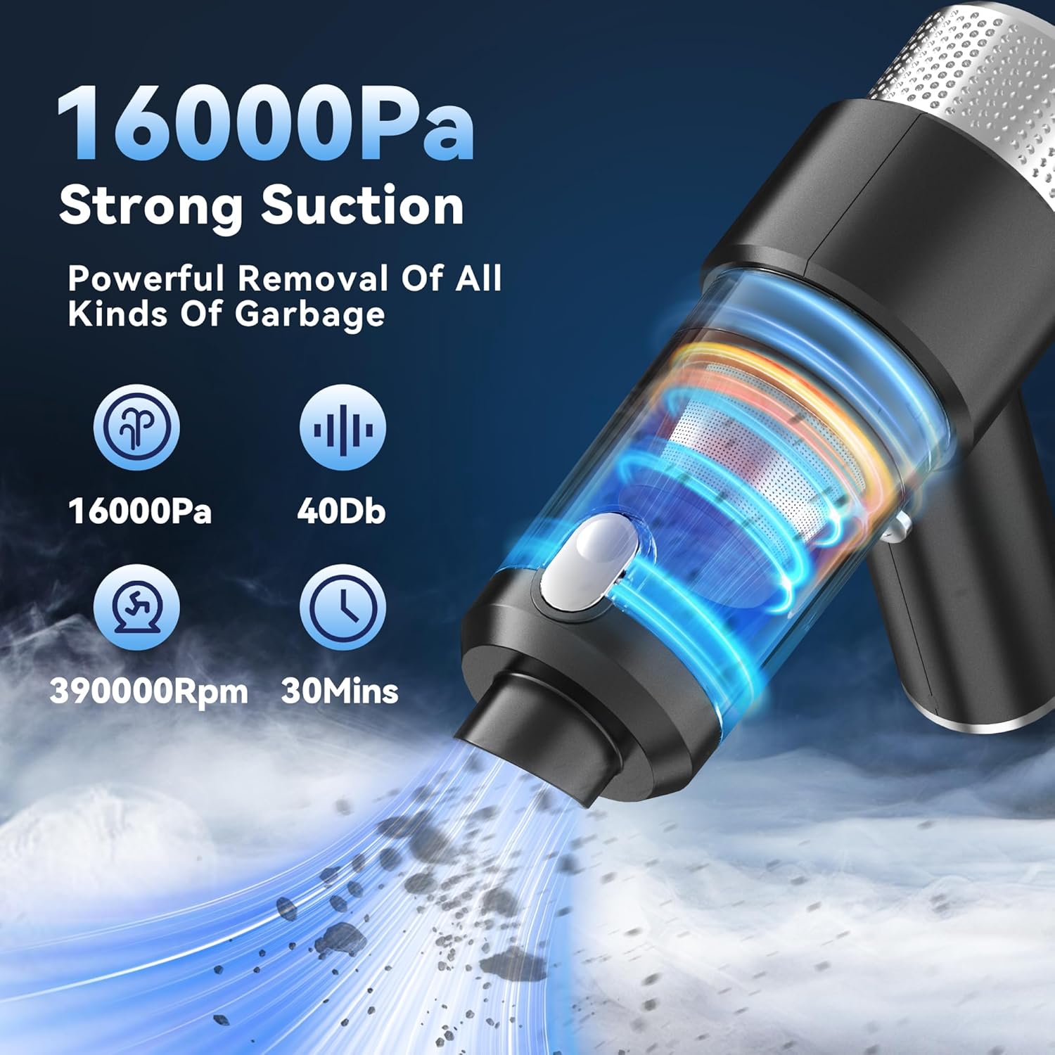 [ Metal Filter & Hepa Filter ] :The vacuum’s 200 ML dust cup is easy to empty with just one button press, and the included HEPA filters are both washable and reusable. These filters are designed to maintain strong suction power by preventing clogs and ensuring that even the smallest dust particles are captured. Make sure to dry the filters completely before the next use to ensure optimal performance.