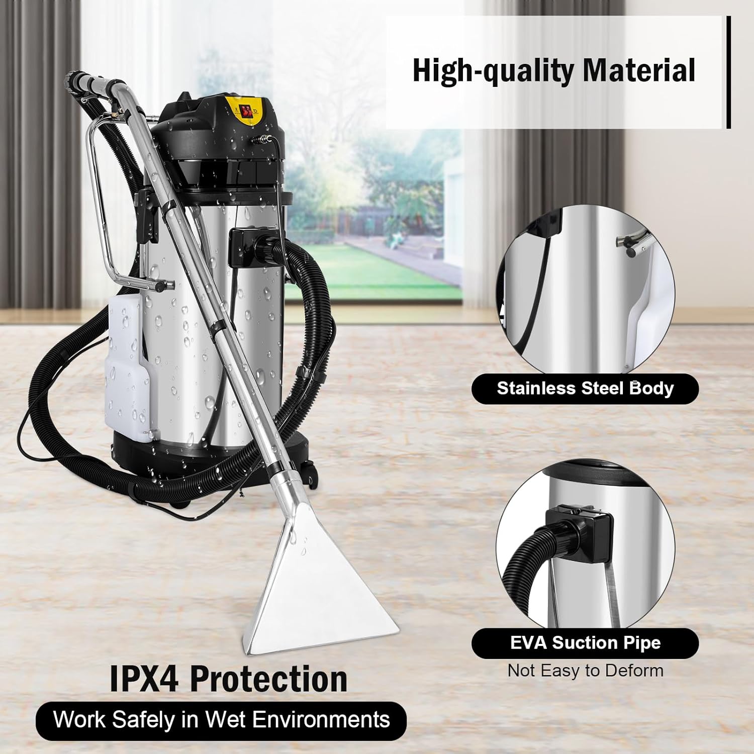High Power : This commercial carpet cleaning machine has a 1034W high-power motor ensures strong suction(230mbar) in any working environment, allowing you to efficiently and quickly complete cleaning tasks.