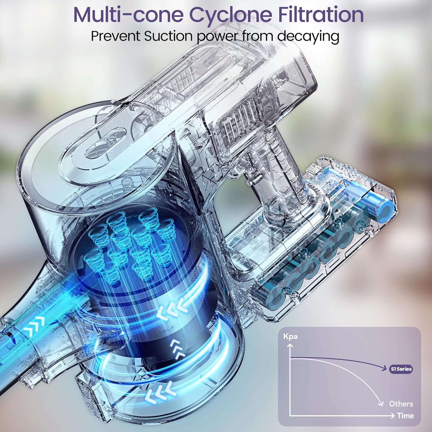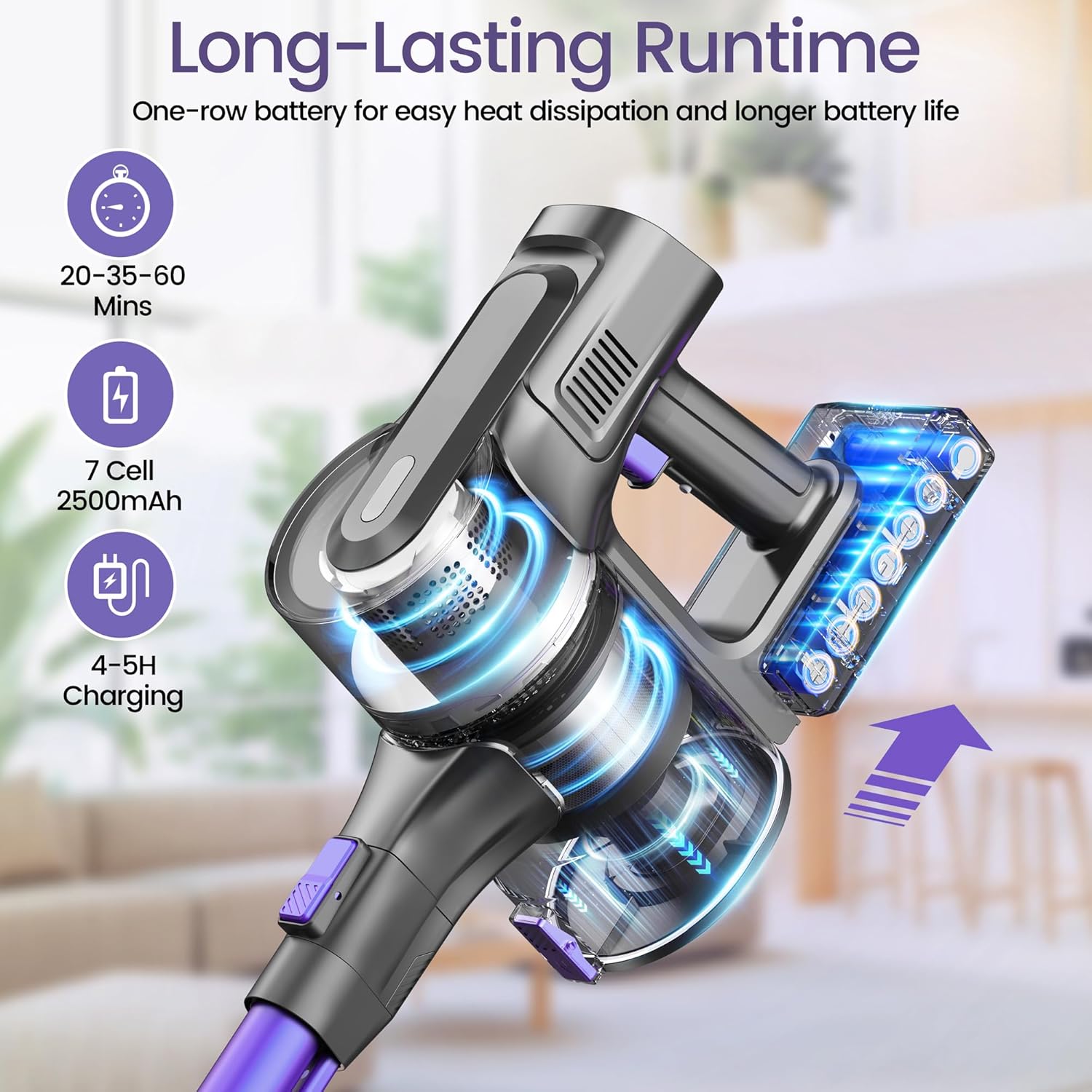 Cordless Vacuum Cleaner, Powerful Suction Vacuum with 40Kpa 500W Brushless Motor, Lightweight Stick Vacuum Cleaner Max 60 Min Runtime for Carpet and Hard Floor Pet Hair (Purple)