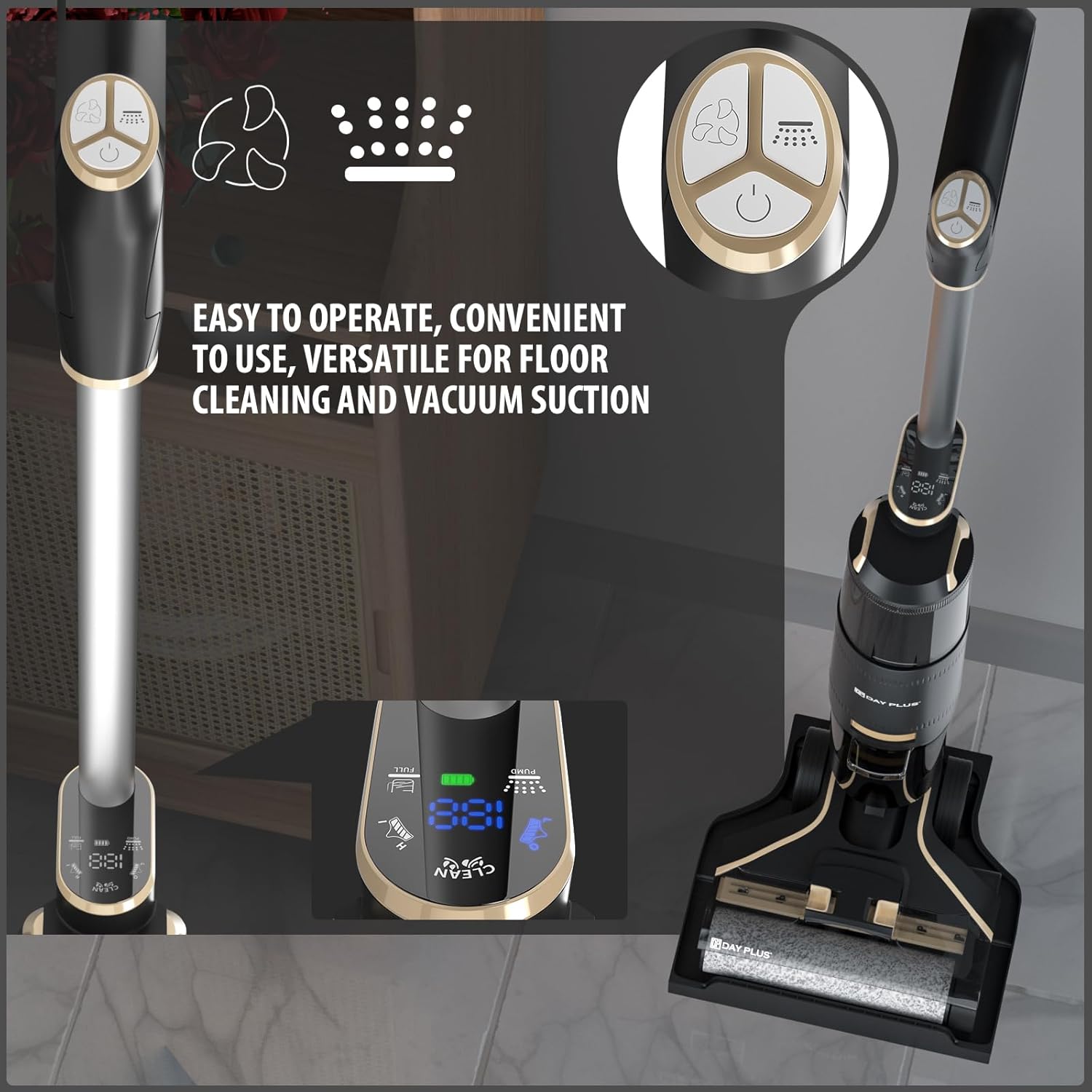 With wet and dry vacuum cleaner, stubborn and sticky dirt can be easily vacuumed up and mopped in one operation without any cables. This cordless vacuum cleaner ideal for daily cleaning of tiles/laminate/parquet floors. Everything is quickly clean again.