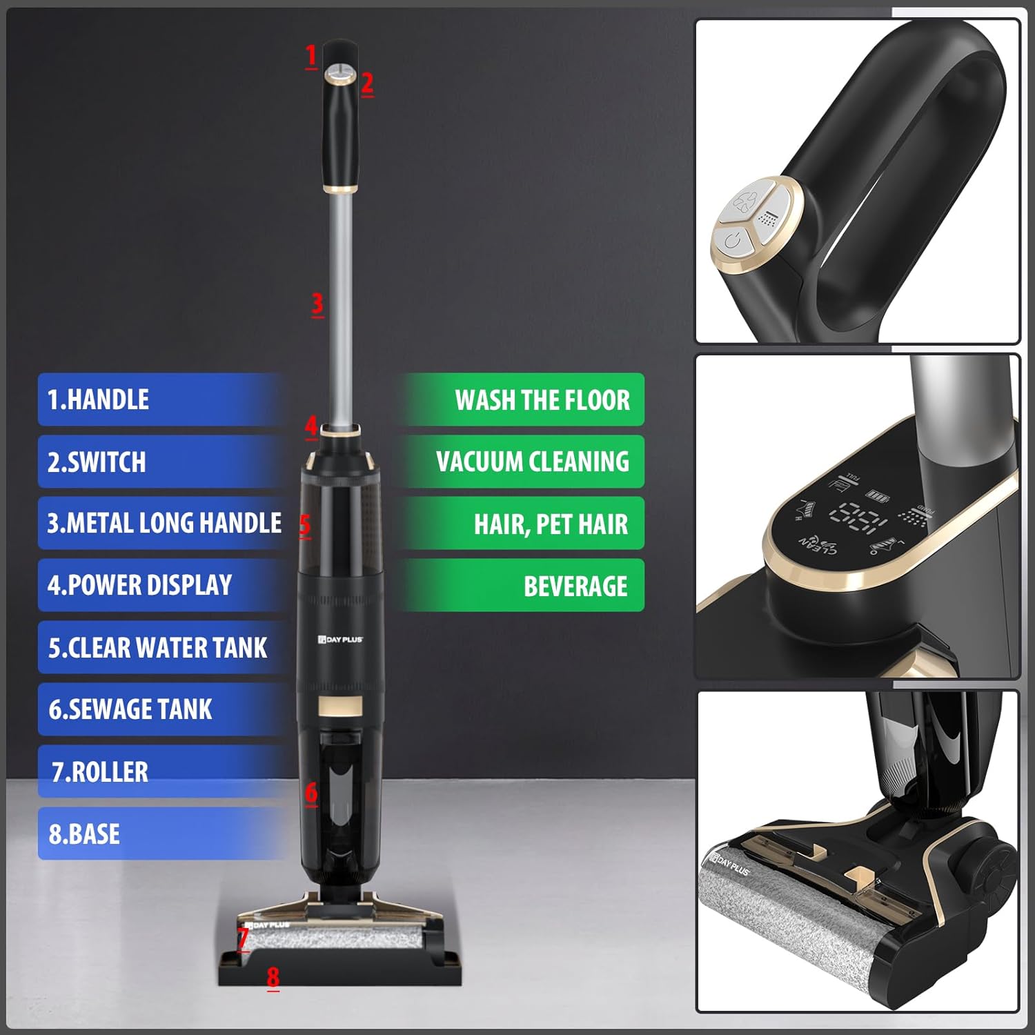 Lightweight & Self-Cleaning Design — This wet dry vacuum cleaner is cord-free and lightweight (weighing less than 9.5lbs), Effortless to handle it all around your house and easily carry it from room to room. The self-cleaning cycle deep-cleans the brush roller and tubing for hands-free maintenance.