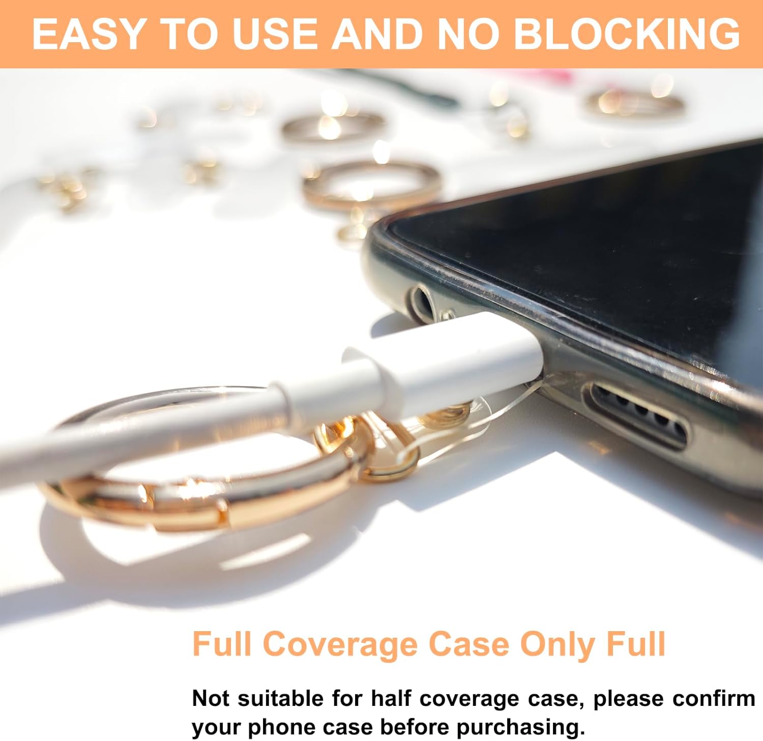 Easy to Use and No Blocking: The universal phone lanyard tag is easy to install, simply slip the cell phone lanyard tab through the charging hole and insert it into your phone, then attach the ring or lanyard to it; The ultra-thin liner won’t clog your charging hole, making you charge your phone easily