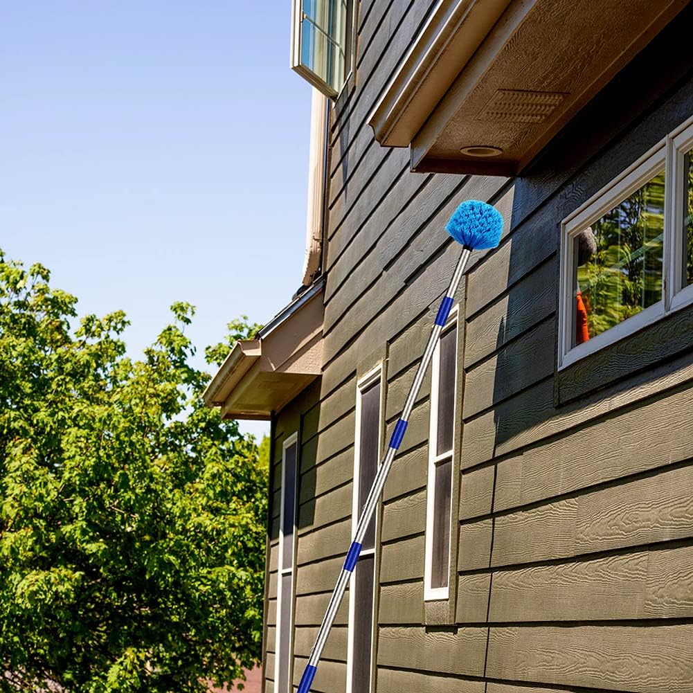 【Easy to Assemble & Use】Just screw cobweb brush twisted onto the extension pole and use screw to reinforce. Also easy to disassemble and storage. The long handled dusters are very good at cleaning cobwebs and dust from under the house eaves, porch, walls, blinds, windows, house ceiling fan, garage, pool cage and lanai, etc.