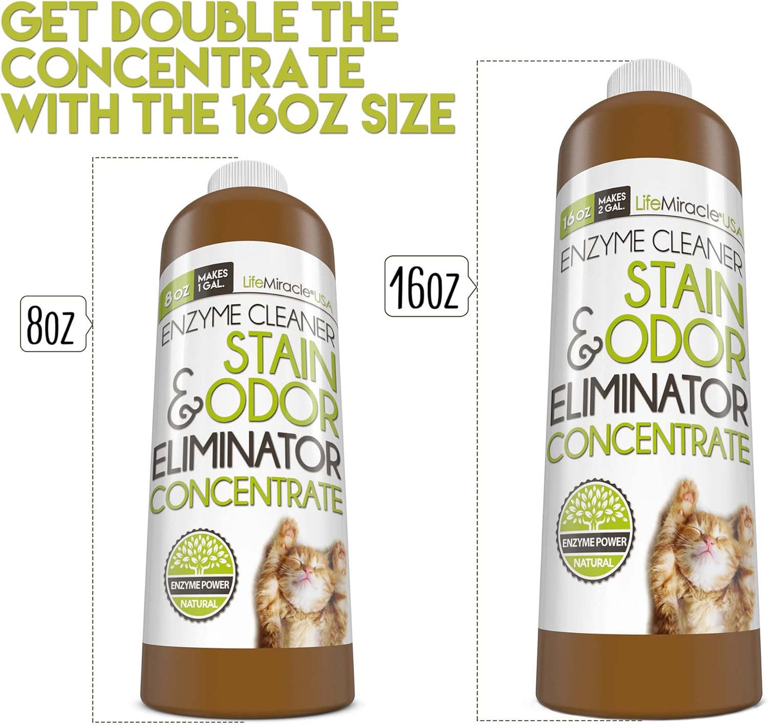 I love that LifeMiracle All Natural Enzymatic Stain & Odor Eliminator Concentrate actually works. In the laundry. In the spray bottle. In the mop bucket. It seems pricey, until you smell (or don’t smell the you-know-EW) how well it works. I love that the scent is almost non-existent and what is there fades within minutes AND TAKES THE STINK WITH IT!We have (way too many) rescued elderly Chihuahua mixes & rescued cats. Both groups have issues with putting the poop & pee where it’s supposed to go, lol. We wash baseboards, floors, dog blankets & potty pads, cat box areas, and lots of generally “marked” laundry. We’ve tried (way too) many of the products on the market that promise odor elimination. Most are maskers that don’t really eliminate odors. We thought Nature’s Miracle was #1. Now it’s #2. Our new #1 is now LifeMiracle All Natural Enzymatic Stain & Odor Eliminator Concentrate. It lifts the appalling stains off the potty pads, & makes them smell like NOTHING. I put some dog-safe essential oil on a dry washcloth in the dryer with the potty pads just to give them any scent, because the enzyme just works so well it’s unnerving at times, lol.The two pics I posted are ones I took to send to a friend who is a professional pet sitter, as a spontaneous recommendation. I wish LifeMiracle made tiny 2 or 4 oz gift bottles. Just enough to make a spray bottle full, or do a load of laundry, to get the folks hooked by smelling it work for themselves.Thank you, LifeMiracle!