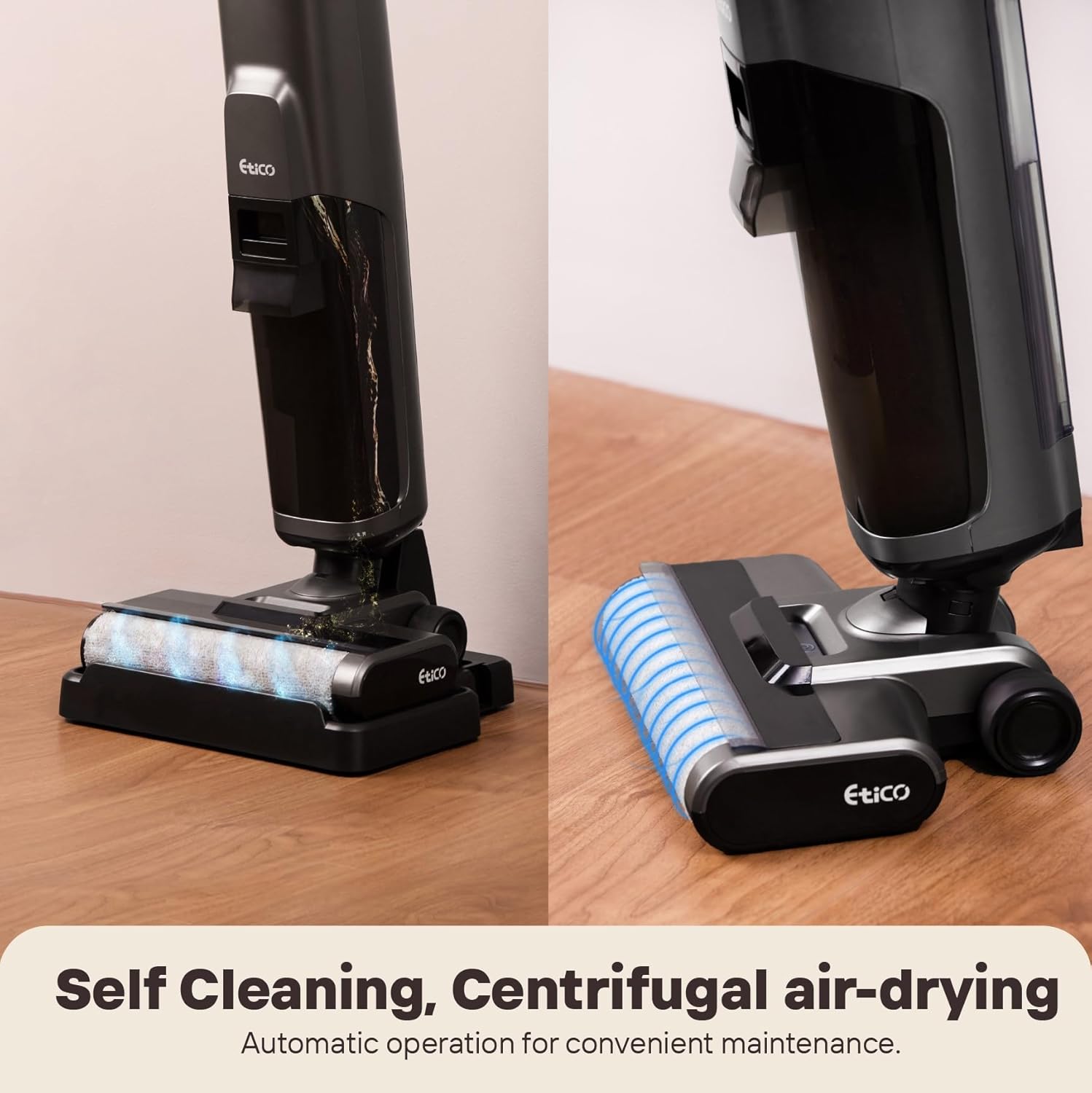 Etico ET5 vacuum is pretty solid for keeping your floors clean easily. Here’s the quick rundown:Performance: It gets into those annoying corners well and dries floors super quick, no streaks.Tech: It uses water in a cool way to mop—eco-friendly and saves on power.Capacity and Battery: It’s got big tanks for water and a battery that lasts long enough for a good clean.Ease of Use: It’s lightweight, you can handle it with one hand, and it’s got a straightforward touch screen.