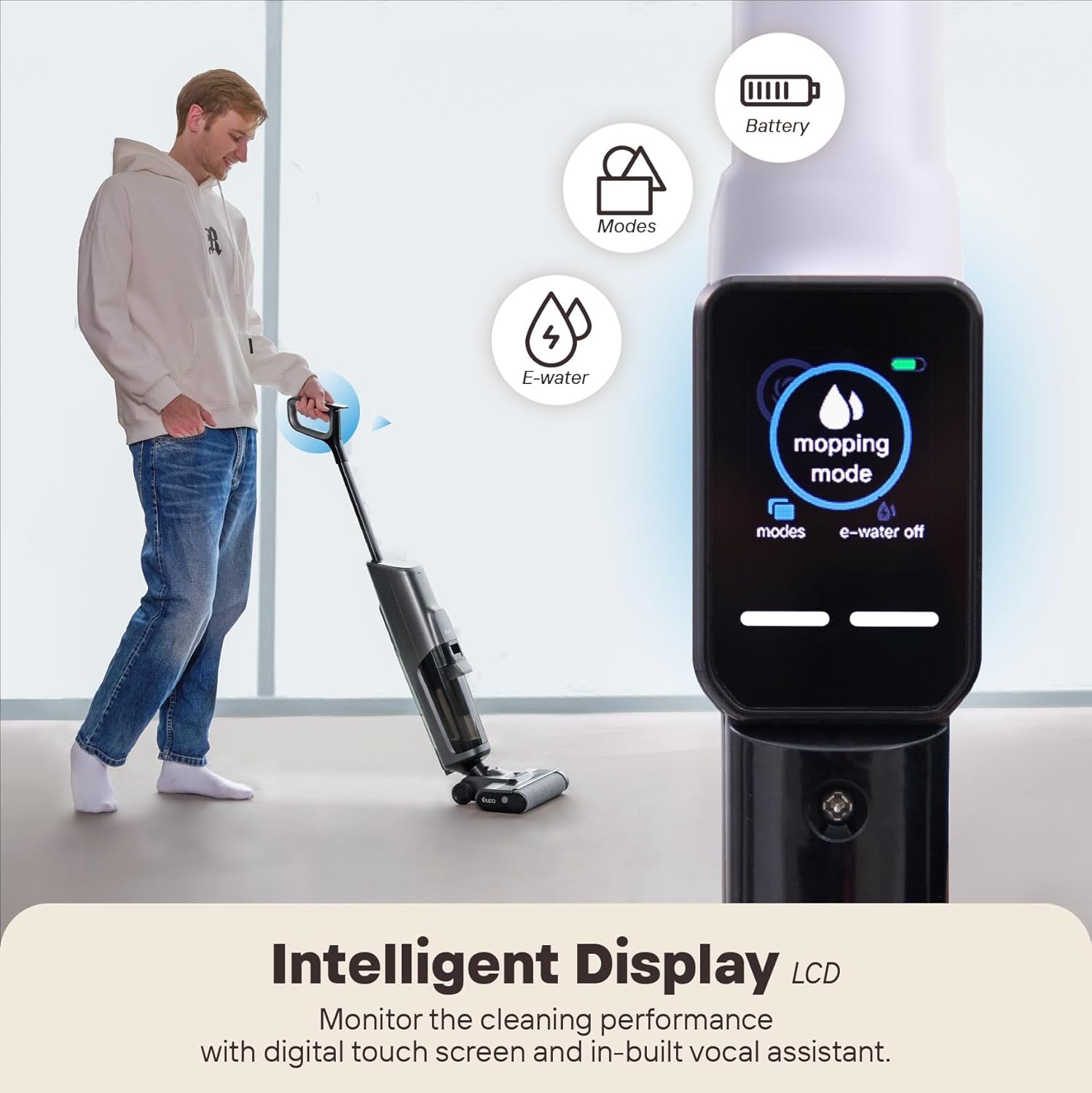 Etico ET5 All-in-one Cordless Wet Dry Vacuum Cleaner and Mop, Electrolyzed Water Cleaning for Hard Floor, 45mins Run Time, Self-Cleaning, LCD Touch Screen
