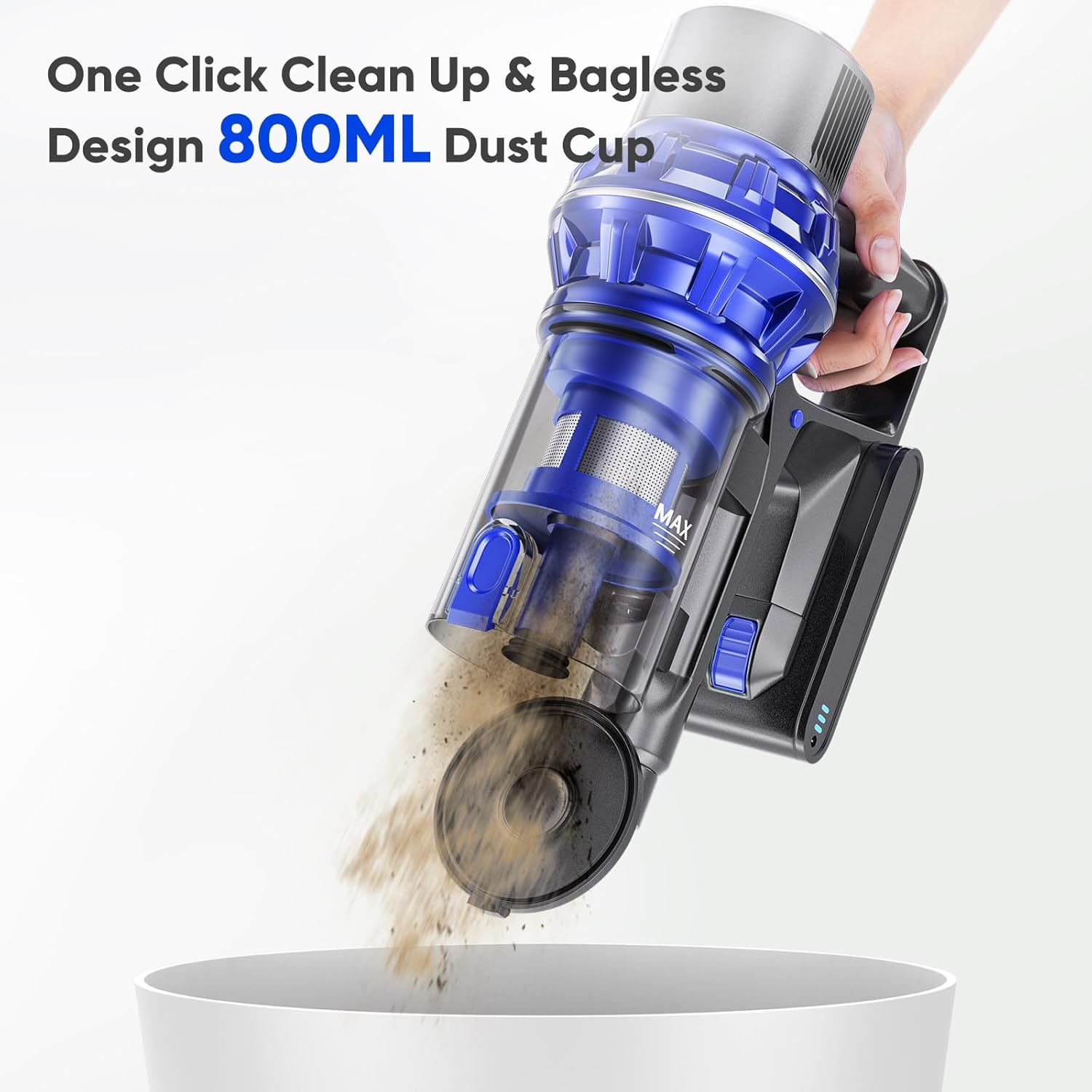 🟦【Powerful Suction with 2 Modes】One press to start cleaning, no need to long press operated. Wireless detachable rechargeable battery operated, 20-35 mins runtime. With 2 suction modes, MAX up to 25KPa powerful suction.