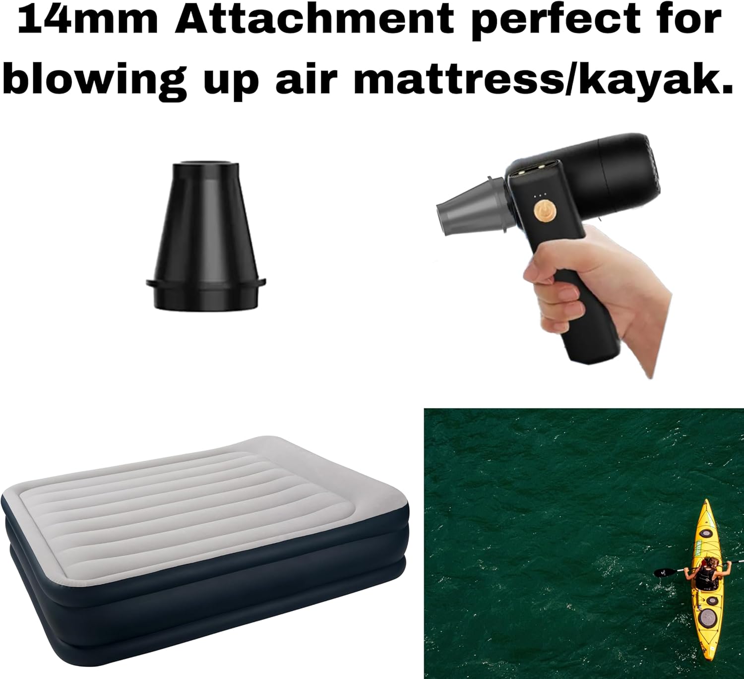 SUCTION & BLOWING FUNCTION This versatile 6-in-1 handheld car vacuum cleaner offers suction, blowing, pumping, and inflating functions, making it ideal for home, hiking, and travel use. It includes three suction accessories for everyday cleaning and vacuum compression, along with three different nozzles for inflating balloons, swimming rings, pools, or mattresses. For more powerful blowing, simply remove the nozzle.