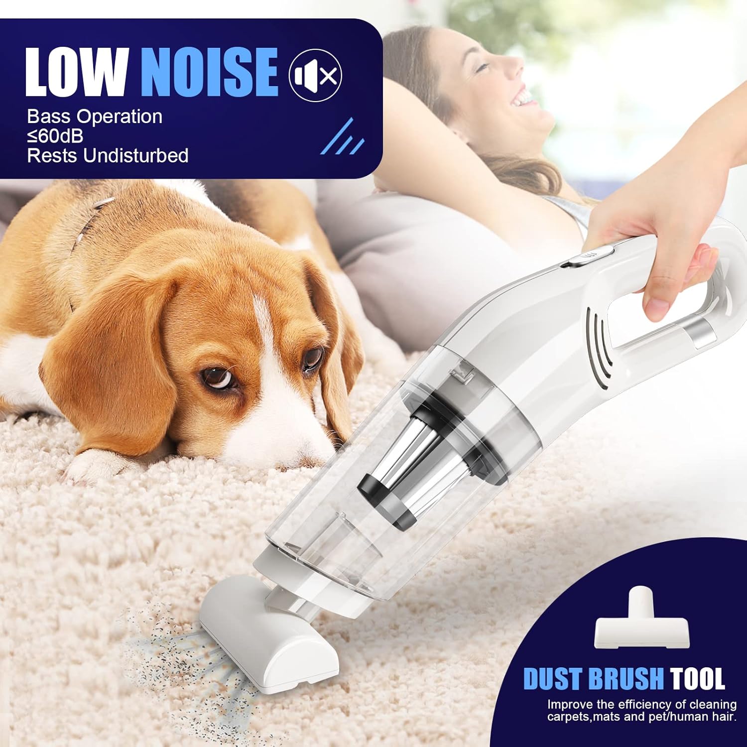 ERGONOMIC DESIGN & LIGHTWEIGHT & LOW NOISE: This handheld vacuum cordless is lightweight and portable, only 1.1pounds, and it will not feel tired even if it is held for a long time. so you can easily pick it up to clean all parts of the room anytime, anywhere, and get rid of the trouble of short or tangled cords.The ergonomic handle design makes cleaning comfortable and effortless.The small vacuum with low noise ≤60dB, and no need to worry about affecting family rest.
