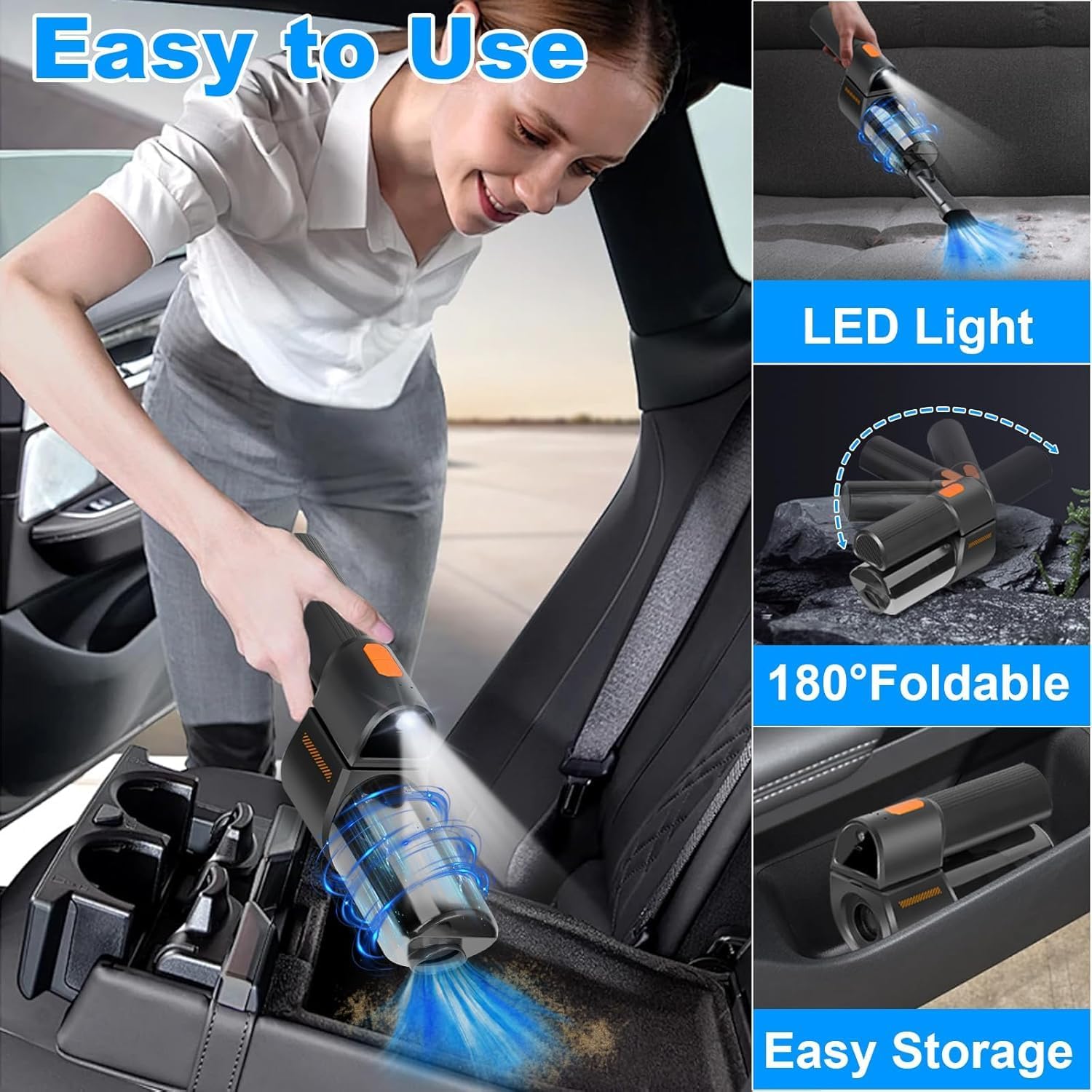 LED Light Vacuum: Handheld vacuum cleaner equipped with LED lights, It provides ample lighting while you clean, allowing you to see every corner clearly. Whether it’s a dimly lit part of your car or a narrow crevice, you can clean it with ease