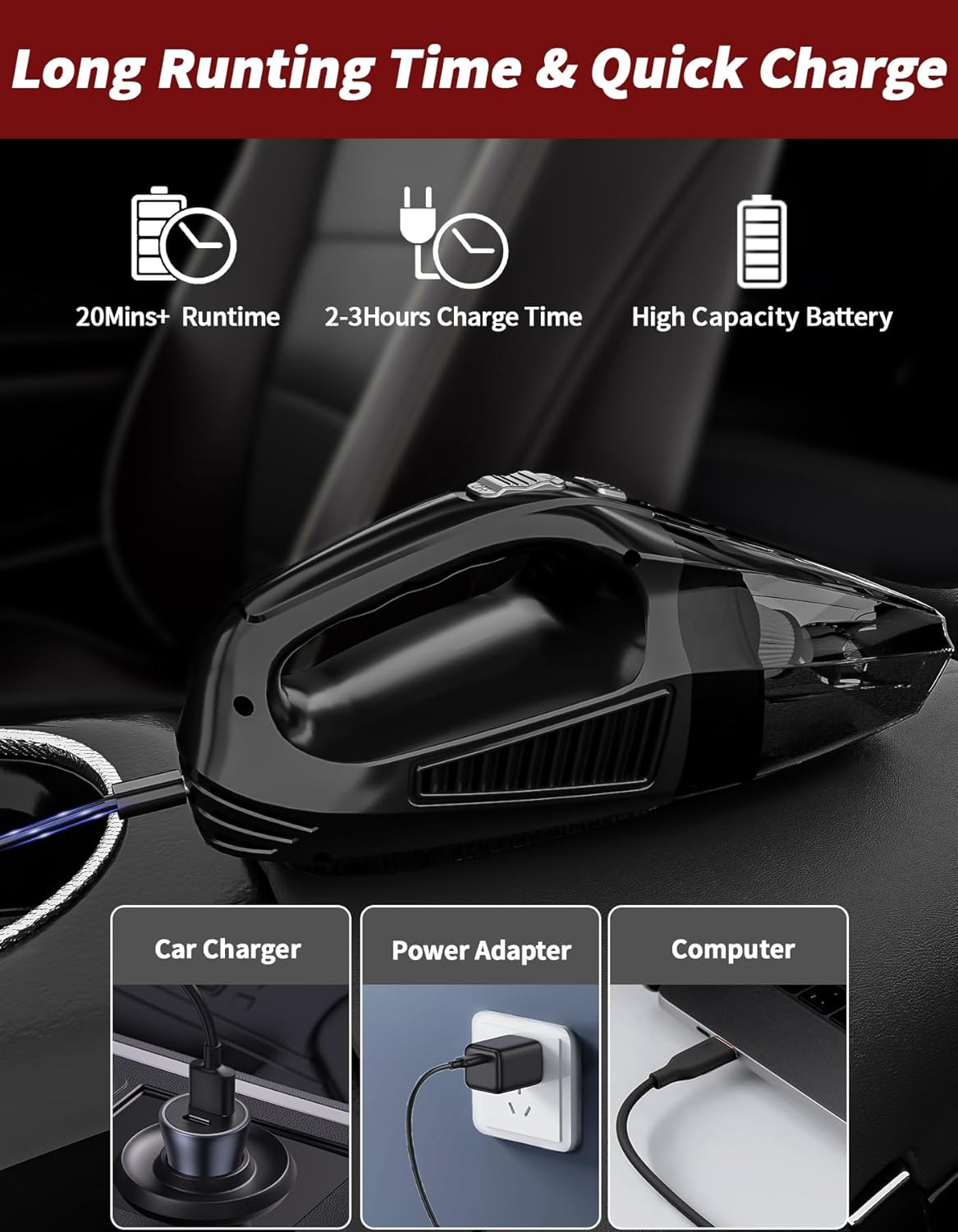 FAST AND CONVENIENT CHARGING: This cordless vacuum cleaner is equipped with a Type-C fast charging port and it can be fully charged in only 2-3 hours. It also comes with a high-capacity lithium battery, which allows this portable vacuum cleaner to work continuously for more than 20 minutes (fully charged status). The SERVOMASTER SM03 car vacuum cleaner can save you a lot of time and is always ready when you need it.
