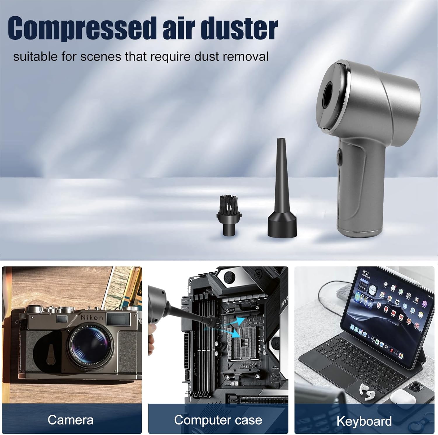 Ich reinige öfter alte PC’s und diese sind verstaubt ohne Ende insb. die Lüfter. Hier ist die Luftblasfunktion super praktisch. Aus dem reichhaltigen Zubehör wird einfach eine passende Düse hinten angesteckt bzw zum Staubsaugen eine passende Düse vorne angesteckt. Also super praktisch. 2 Geräte in einem. Ich hatte auch schon Luftdruckspray, dieses ist teuer und fast schon zu stark für empfindliche Teile.So ein Kombigerät hat mir echt gefehlt, Qualität ist sehr gut und Akku scheint ewig zu halten. Ich hab den zum Reinigen kleiner Krümmel auf Schreibtisch, Boden schon so oft benutzt und bisher noch nicht 1x laden müssen (laden über ganz normales USB C Kabel) liegt auch bei.Der Hepa Filter gibt mir ein gutes Gefühl, dass die kleinen Partikel nicht gleich wieder hinten raus geblasen werden, Ersatzfilter ist auch noch mit dabei. Wobei leeren und reinigen des Filters keine groÃe Prozedur ist und schnell geht.Also Blas und Saugfunktion perfekt, reichhaltiges Zubehör, Akku hält lange und Qualität, Haptik sehr gut. Bin sehr zufrieden mit dem Gerät und kann es weiter empfehlen.