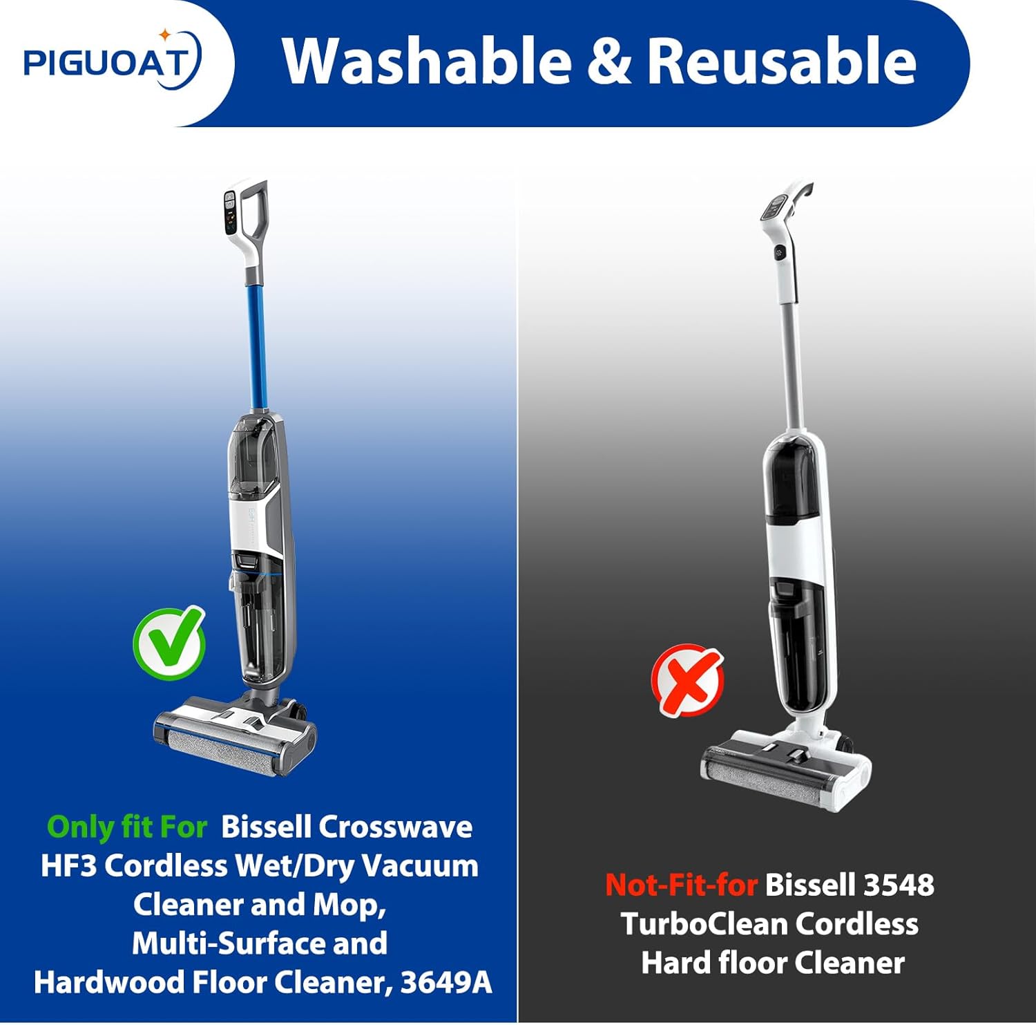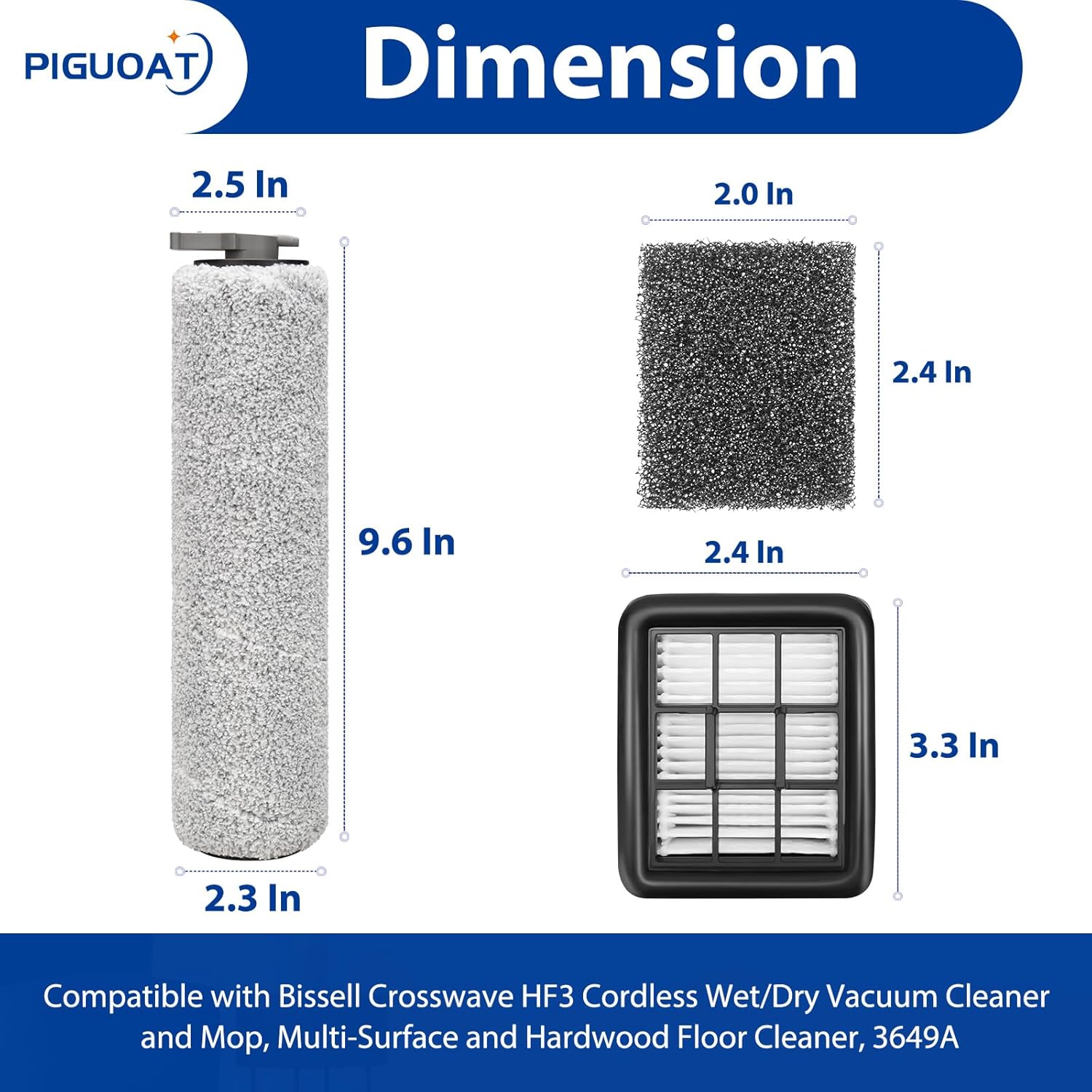 HF3 Roller Filter Kit Fit for Bissell Crosswave HF3 Cordless Wet/Dry Vacuum Cleaner and Mop 3649A Vacuum
