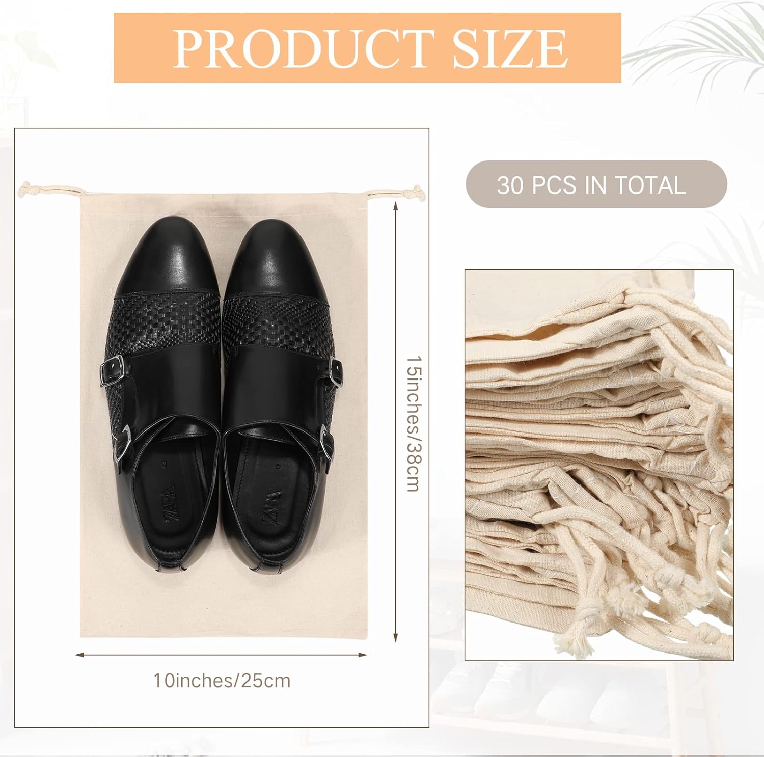 Hillban 30 Pcs Shoes Bags Storage for Travel Dust Proof Muslin Cotton Drawstring Bags Breathable Pouch for Home Pantry Gifts Necessities Footwear Luggage Handbags Accessories Protection 10 x 15 Inch