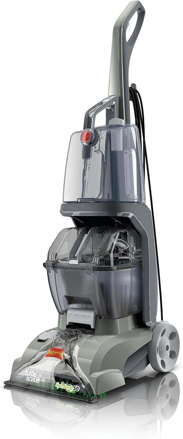 Help extend the life of your carpet with the Hoover Turbo Scrub Carpet Cleaner. Designed to clean many carpeted and fabric surfaces in and around your home. Make cleaning a breeze with spill free tanks that are easy to access, easy to fill, empty and clean. The Turbo Scrub features SpinScrub multiple brush system.
