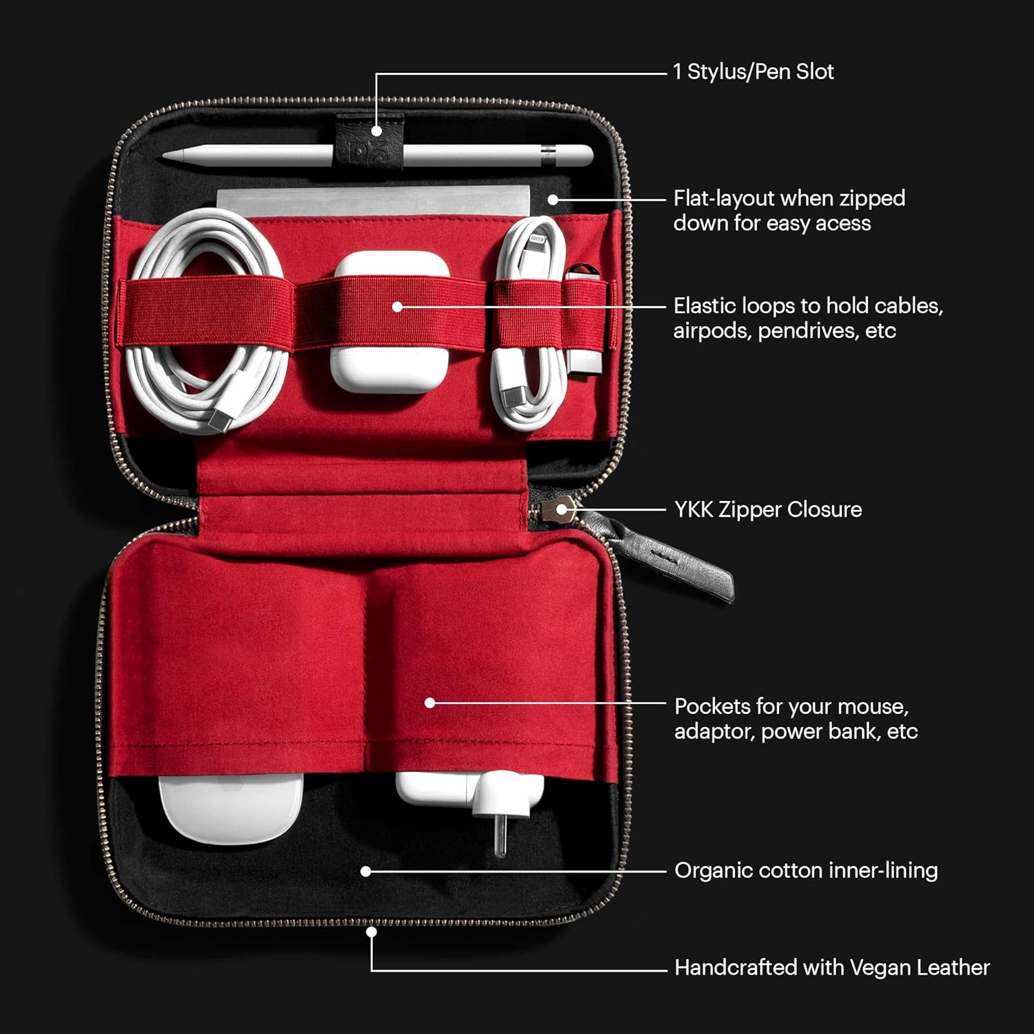 An organised solution for your tech accessories, you didn’t know you needed. Sorts your work and your travel effortlessly.