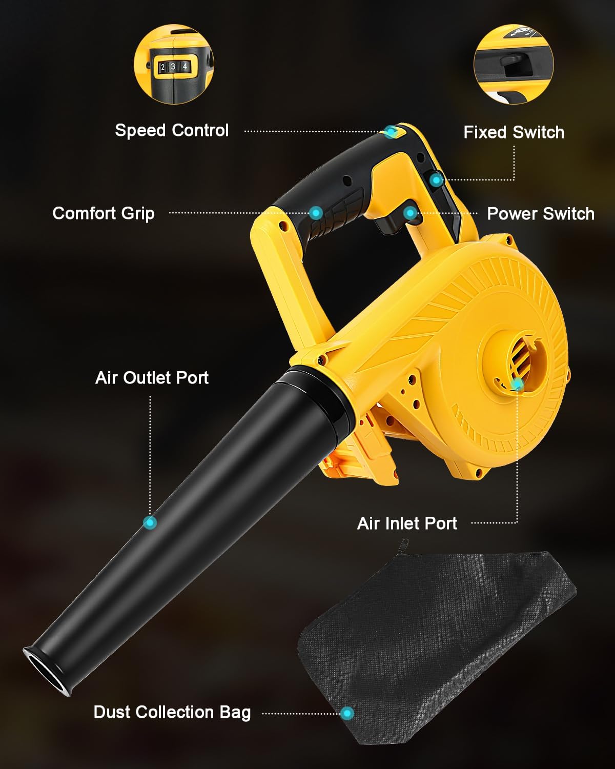 Wide Compatibility: The cordless leaf blower Replacement for Dewalt leaf blower 20v Compatible with Dewalt 20v battery DCB200 DCB201 DCB203 DCB204 DCB206 DCB207 DCB18, etc. (Charge the battery first after you received the package for a better experience.)
