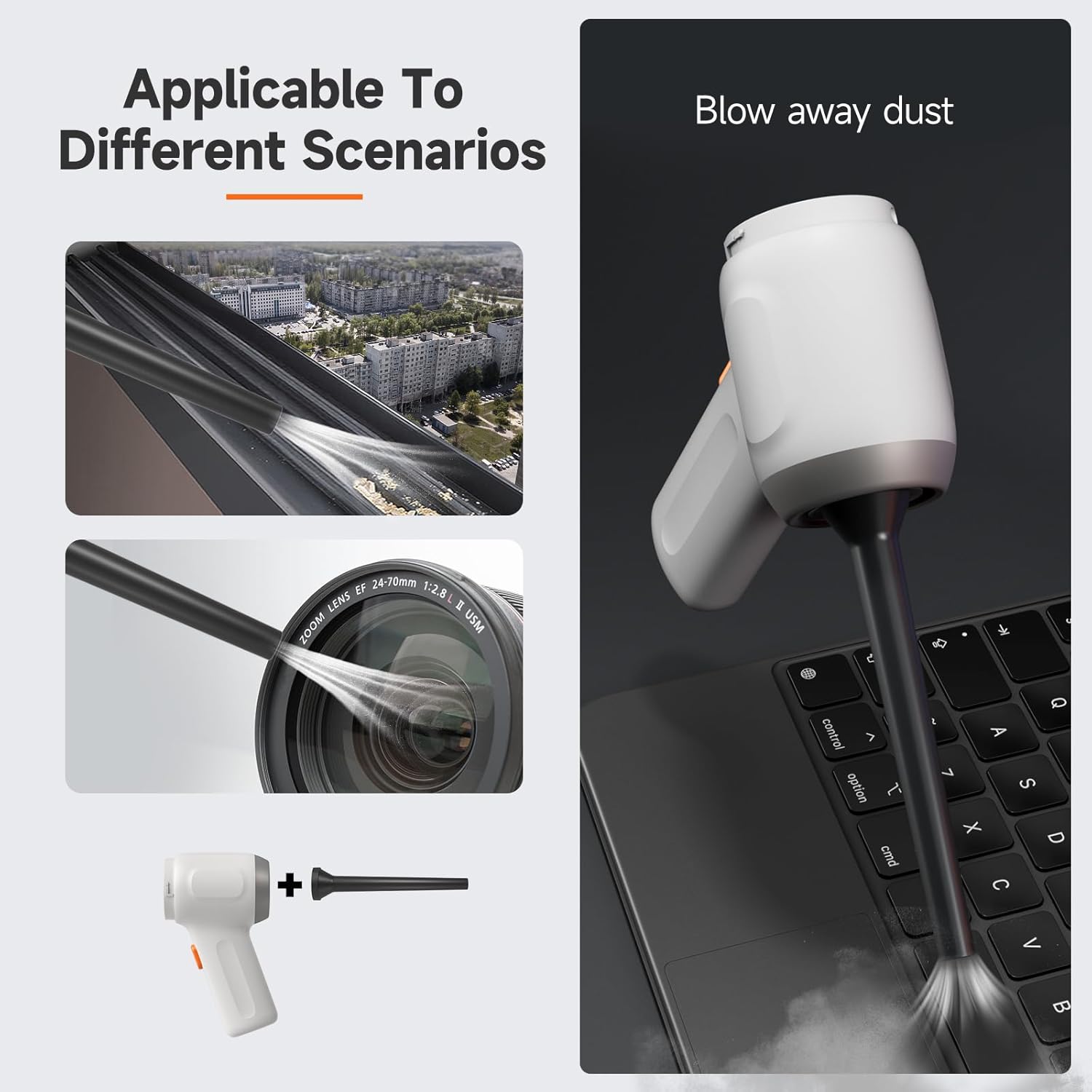【3-In-1 Multifunctional Mini Vacuum】: This handheld car vacuum comes with a variety of accessories for blowing, vacuuming, and pumping to meet all your daily cleaning needs, and the powerful suction makes it effortlessly suck dust and debris from your car seats, carpets, and crevices. at the other end is a blower that easily blows away dust from keyboards, camera lenses, and pianos; It can also be used to pump up balloons, swimming rings, or vacuum seals.