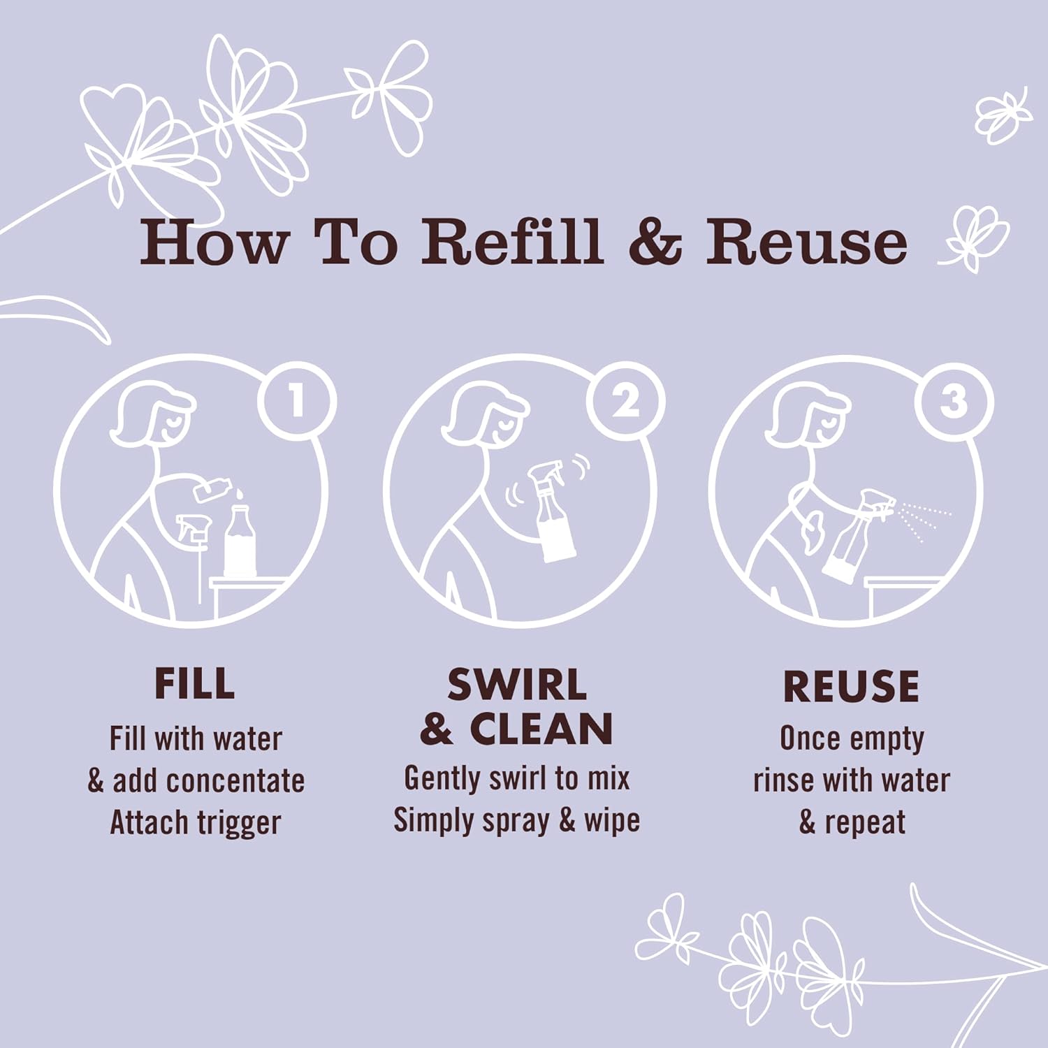 Mrs. Meyer’s 2 oz Concentrated Refill is equal to 1 full Multi-Surface Everyday Cleaner using our 16 oz reusable glass or plastic bottles
